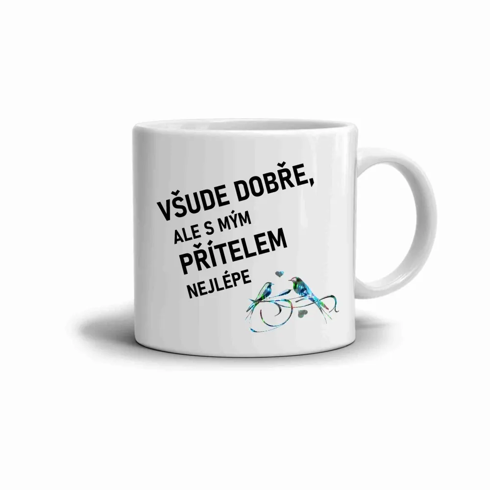 Úvodní motiv působí jemně a romanticky, protože dvojice drobných ptáčků krásně vyjadřuje blízkost a pohodovou atmosféru společných chvil. Celek působí lehce a pozitivně a připomíná, že po boku přítele je každé místo příjemnější a radostnější. Hrnek je vhodný do myčky!
