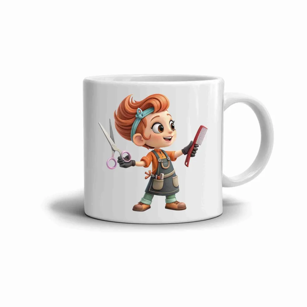 Veselý motiv postavičky s nůžkami a hřebenem přináší do každého dne hravost a energii. Motiv působí přátelsky a optimisticky, ideální pro milovníky kreativity a řemesel. Jasné barvy oranžové, modré a zelené dodávají hrnku svěží vzhled a radostný tón. Tento design rozveselí každou pauzu na kávu i pracovní stůl. Hrnek je vhodný do myčky!