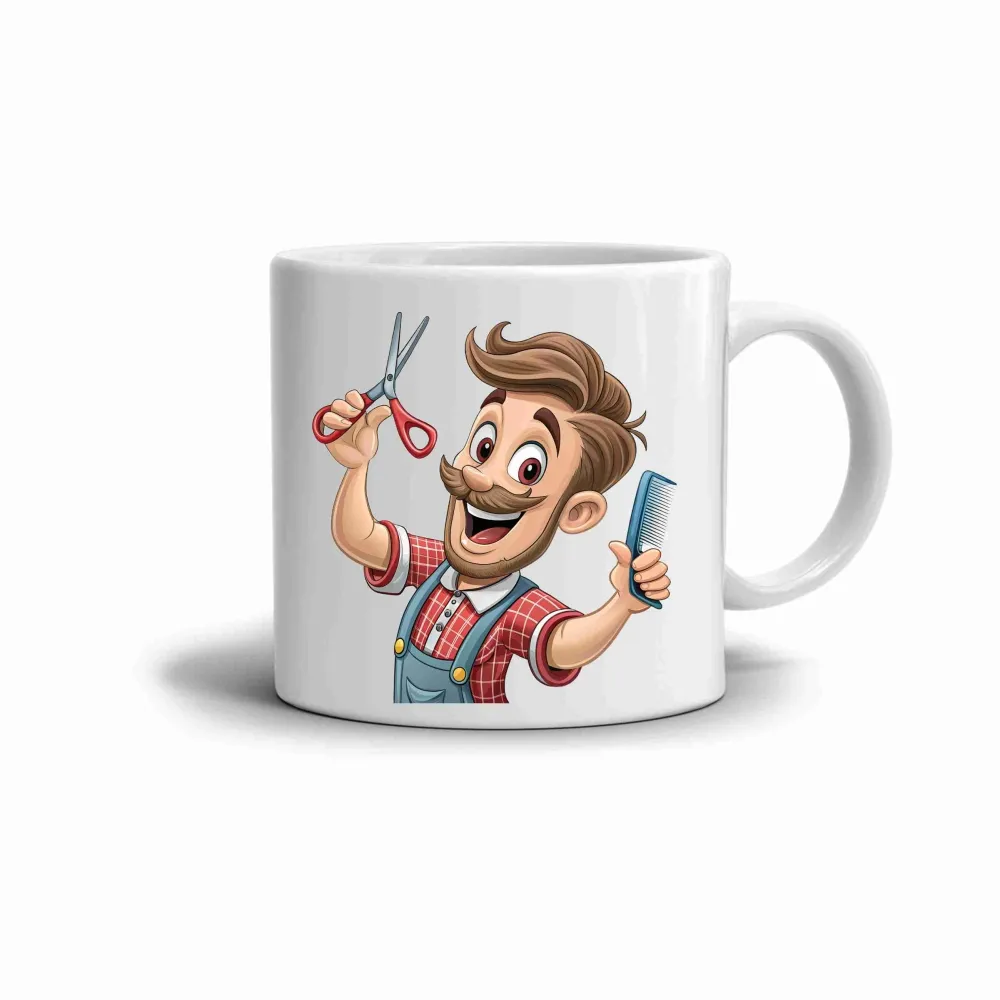 Veselý motiv kadeřníka s nůžkami a hřebenem vyzařuje energii, dobrou náladu a tvůrčí nadšení. Motiv působí přátelsky a optimisticky, jako oslava řemesla i radosti z práce. Živé barvy červené, modré a béžové vytvářejí příjemný kontrast, který přitahuje pozornost a rozjasní každý den. Tento hrnek přináší do běžných chvil úsměv a lehkost. Hrnek je vhodný do myčky!