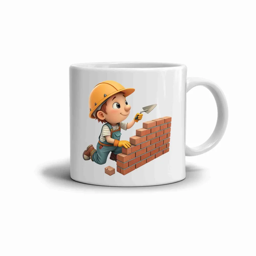 Malý zedník při práci na cihlové zdi působí mile a optimisticky, jako symbol poctivosti, zručnosti a radosti z dobře odvedené práce. Motiv ukazuje kreativní svět řemesel v hravém pojetí, které osloví děti i dospělé. Teplé odstíny oranžové a červené dodávají hrnku příjemnou energii a připomínají, že i malé kroky tvoří velké výsledky. Tento design potěší každého, kdo má rád řemeslný svět a pozitivní náladu. Hrnek je vhodný do myčky!