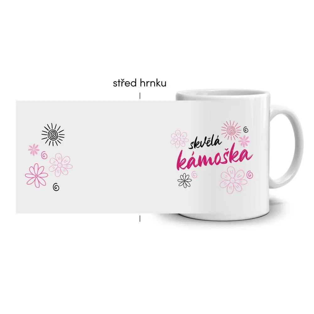 Jemné květinové prvky v růžových a černých tónech dodávají hrnku svěží a přátelský vzhled. Motiv působí lehce a optimisticky, připomíná příjemnou atmosféru společných chvil s blízkými. Celkový design je hravý, ale vkusný, takže hrnek působí moderně a zaujme svým pozitivním laděním. Hrnek je vhodný do myčky!