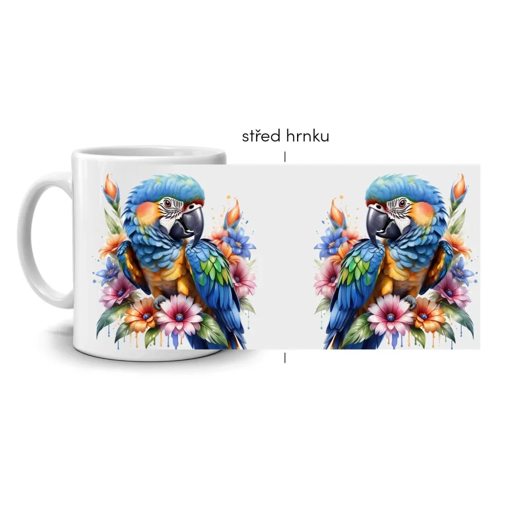 Okouzlující motiv ary ararauny přináší do každého dne výbuch barev a tropické energie. Tento nádherný papoušek, obklopený květy v odstínech růžové, modré a oranžové, působí živě a radostně. Precizně propracované detaily peří vytvářejí dojem pohybu a lehkosti, zatímco kontrastní tóny dodávají hrnku výrazný charakter. Každý pohled na něj rozzáří náladu a promění obyčejný nápoj v malý okamžik radosti. Hrnek je vhodný do myčky!