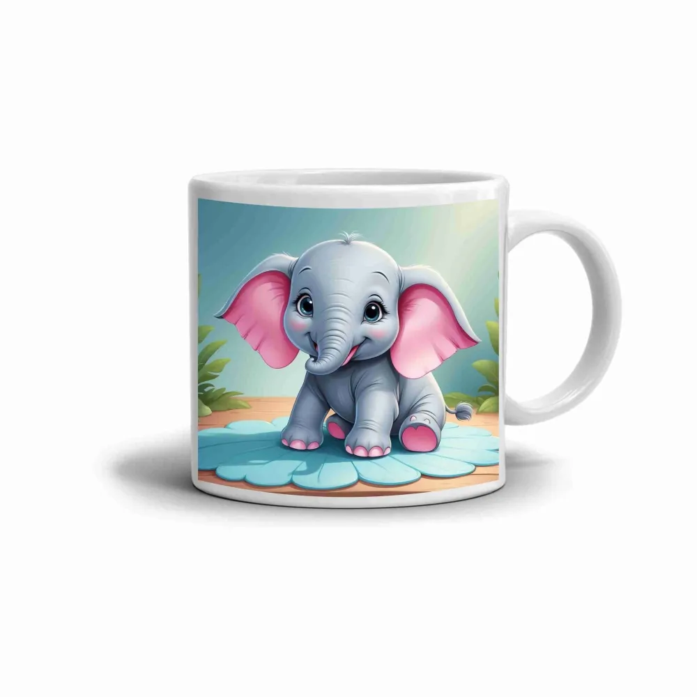 Malý roztomilý sloník sedí na podložce a vyzařuje hravost a radost, ideální pro každodenní zpříjemnění okamžiků. Motiv hrnku je laděn do jemných pastelových barev a přináší optimistickou náladu vhodnou pro děti i dospělé. Každý detail podtrhuje veselou a přívětivou atmosféru. Hrnek je vhodný do myčky!