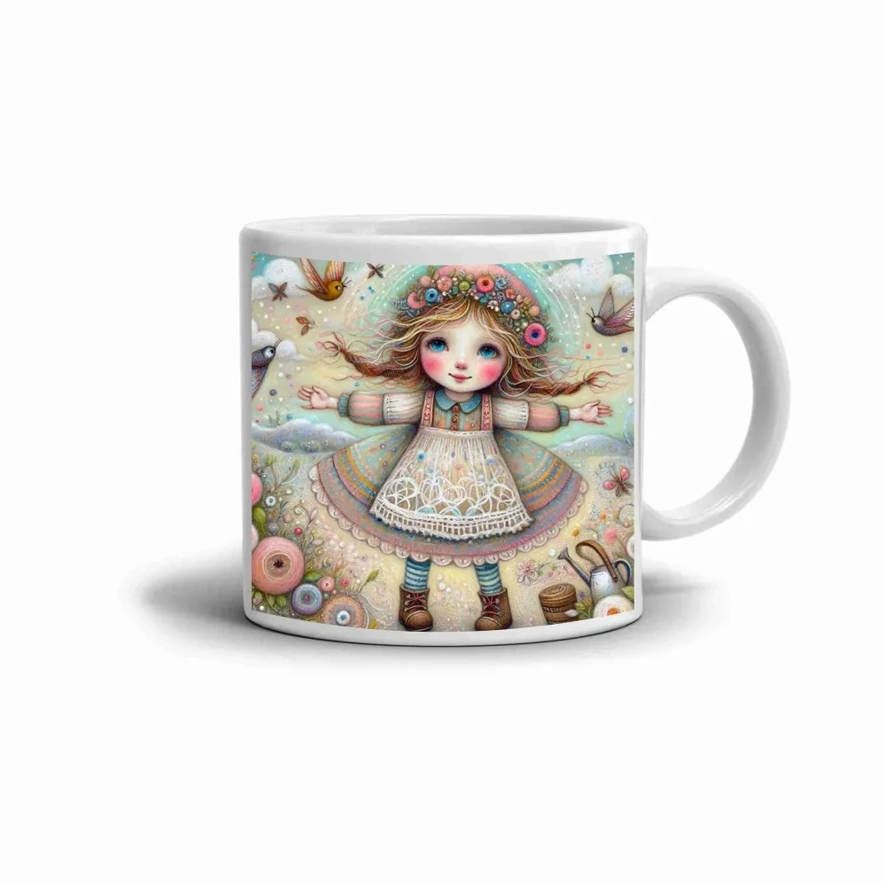 Malá holčička s květinovou čelenkou a roztaženýma rukama přináší do každodenního života radost, pozitivní energii a barevný akcent. Jemné detaily a pastelové odstíny dodávají motivu živý a hravý vzhled. Tento keramický hrnek zaujme jak děti, tak dospělé svou hravostí a estetickým provedením. Hrnek je vhodný do myčky!