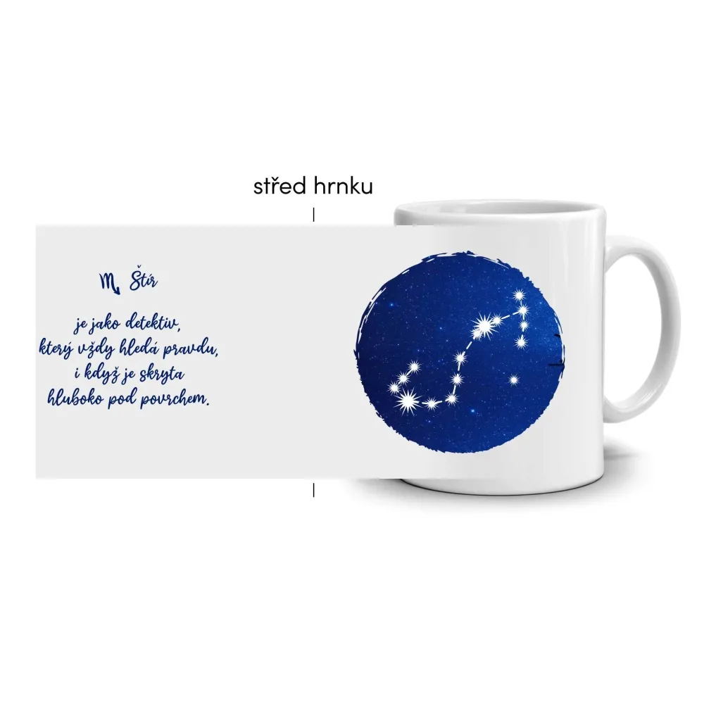 Hrnek se znamením štíra potěší každého, kdo má rád záhady, intuici a hluboké myšlenky. Je ideálním dárkem pro silné osobnosti, které se nebojí pravdy a jdou naplno za tím, čemu věří.