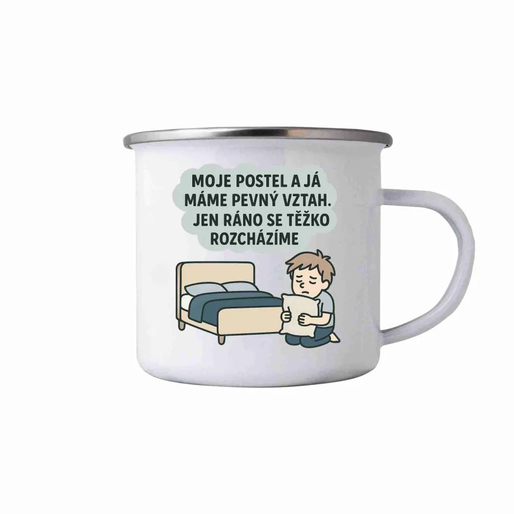 Motiv s postelí a ospalým výrazem vystihuje pocity všech, kteří mají se svým lůžkem opravdu silné pouto. Vtipný text o těžkém ranním rozcházení s postelí pobaví každého, kdo miluje spánek a dlouhé ranní lenošení. Tento hrnek je ideální pro ty, kteří potřebují po probuzení pořádnou dávku kávy a dobrou náladu. Hrnek je vhodný do myčky!