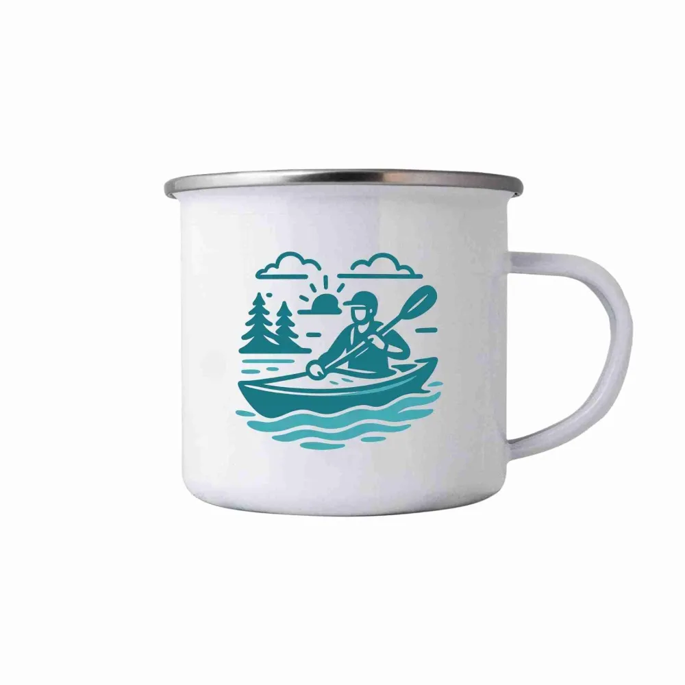 Motiv s kajakářem na řece vyzařuje svěžest a energii vodního živlu. Jednoduché linie a modré odstíny evokují letní den na hladině, kde se spojuje klid přírody s pohybem a rytmem pádlování. Tento design je ideální pro všechny, kteří milují vodní sporty nebo si rádi připomenou chvíle strávené na řece či jezeře. Hrnek je vhodný do myčky!