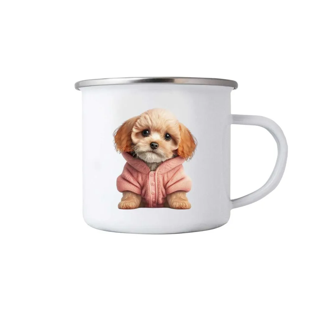 Roztomilý motiv malého pejska v růžovém svetru dodává hrnku jemný a hřejivý charakter. Ilustrace působí přátelsky a mile, jako by pejsek trpělivě seděl a čekal na pohlazení. Detaily kožíšku i pleteného svetru vytvářejí příjemný vzhled který dokáže zpříjemnit každou chvilku s oblíbeným nápojem. Hrnek je vhodný do myčky!