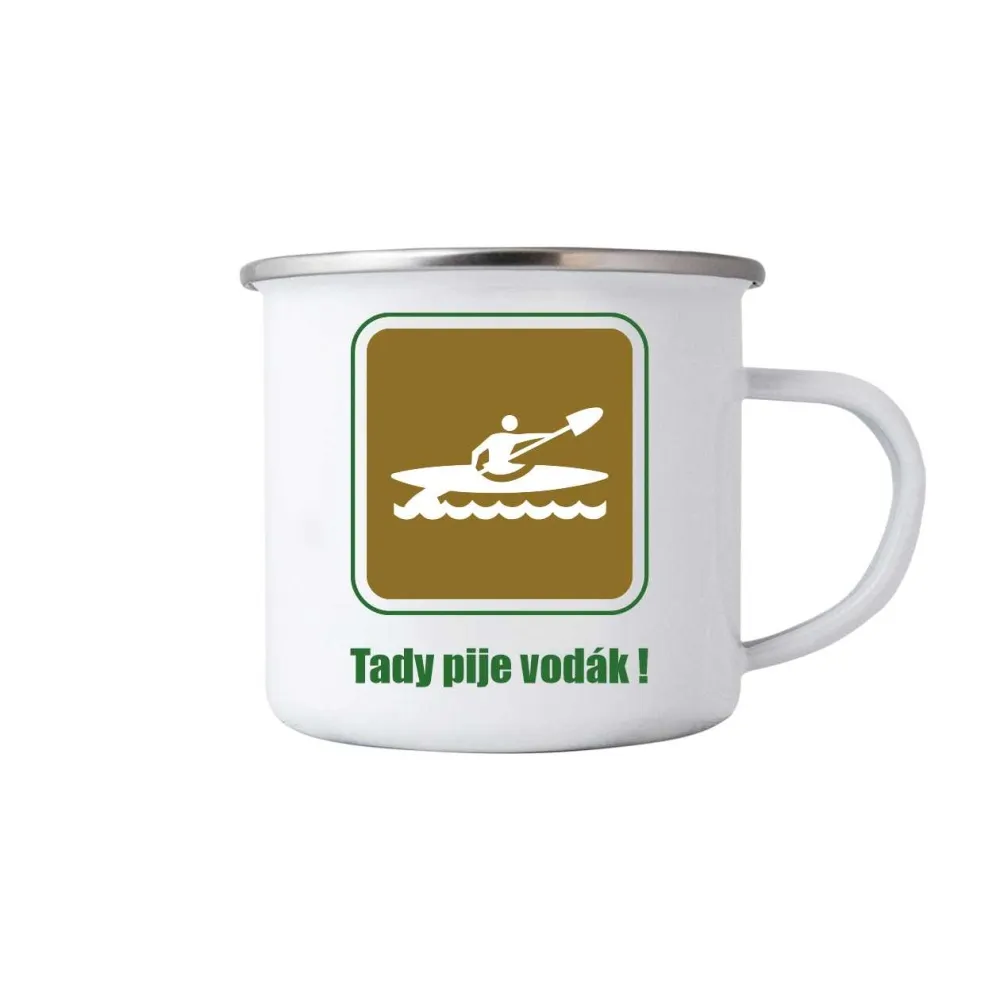 Motiv s kajakářem a nápisem „Tady pije vodák!“ je veselým odkazem na vodáckou kulturu a smysl pro humor, který k ní neodmyslitelně patří. Jednoduchý, přehledný design působí jako turistická značka, ale s úsměvem připomíná, že právě tady se zastavuje pravý vodák na doušek dobrého pití. Hrnek je vhodný do myčky!