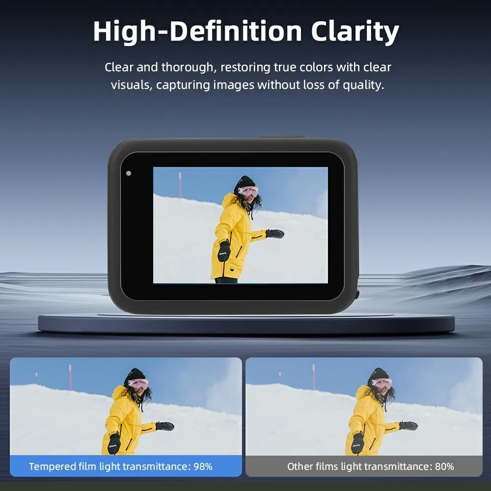 Sada ochranných tvrzených skel BRDRC je navržena pro kameru GoPro Hero 13 a poskytuje spolehlivou ochranu displeje i objektivu. Skla s tloušťkou 0,5 mm chrání povrch před poškrábáním, nárazy a běžným opotřebením při každodenním používání. Vysoká průhlednost zachovává původní kvalitu obrazu i citlivost dotykového ovládání bez zkreslení. Přesné rozměry zajišťují dokonalé přilnutí k povrchu bez mezer a minimalizují vznik vzduchových bublin při instalaci. Povrchová úprava omezuje ulpívání otisků prstů a usnadňuje čištění.