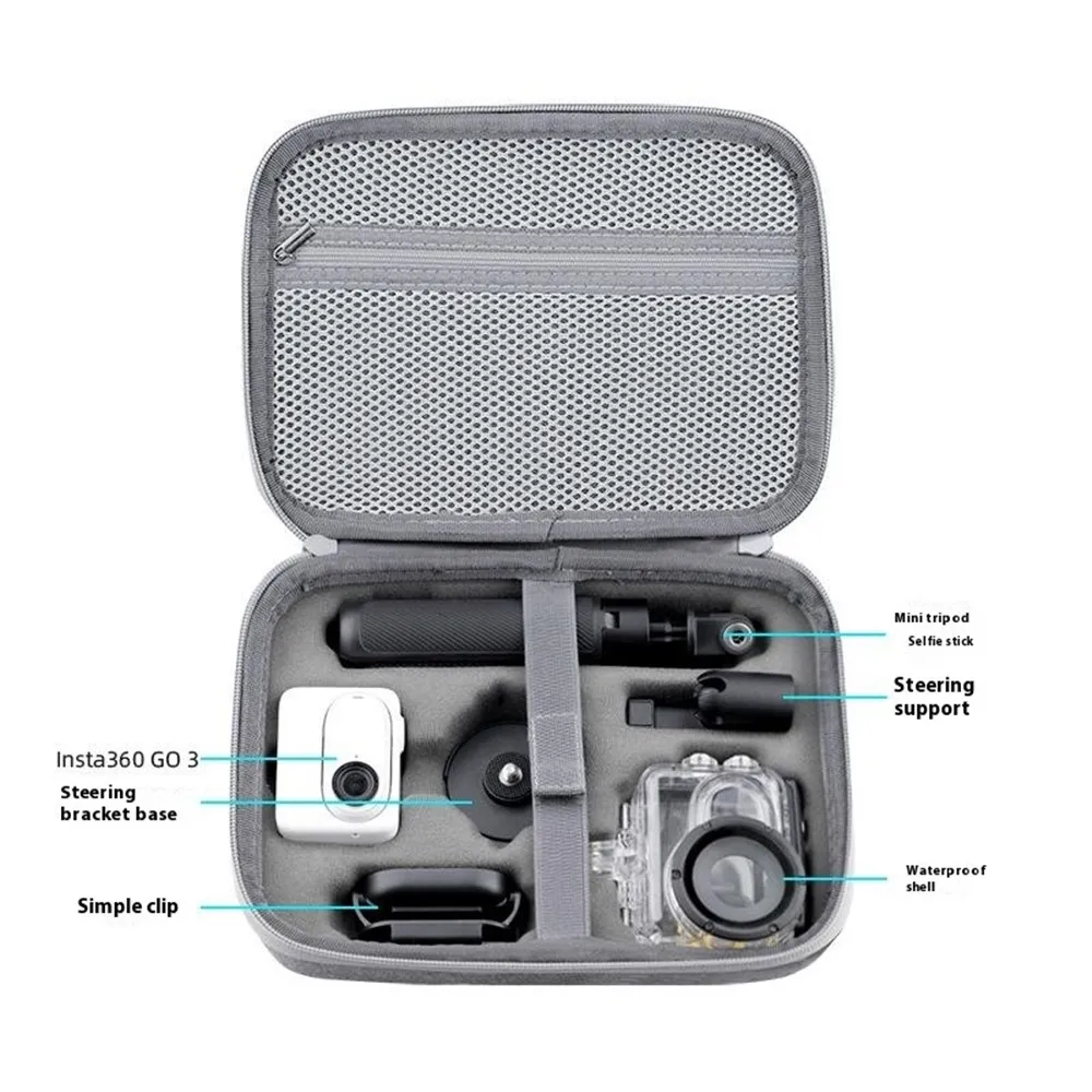 Značka: BRDRC Typ příslušenství: ochranné pouzdro / přepravní taška Materiál: pevný plastový plášť + textilní výstelka Rozměry produktu: 23,5 × 18 × 8 cm Čistá hmotnost: 304 g Uzavírání: zip Kompatibilita: Insta360 GO 3S / Insta360 GO 3 Barva: černá