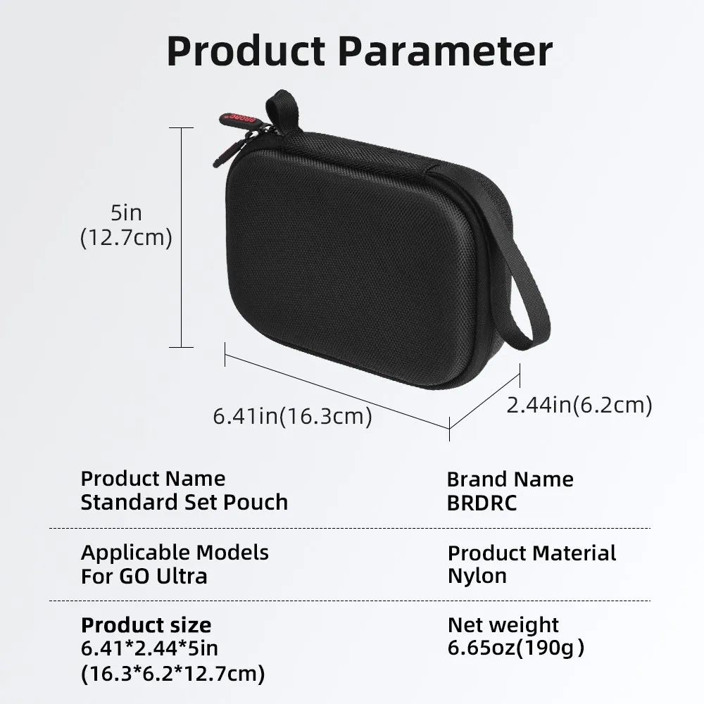 BRDRC úložné pouzdro pro Insta360 GO Ultra Standard Edition je praktická ochranná brašna navržená pro bezpečné přenášení kamery i příslušenství při cestování a každodenním používání. Pevná konstrukce chrání zařízení před nárazy, tlakem a poškrábáním, zatímco kompaktní rozměry usnadňují uložení do batohu nebo tašky. Díky promyšlenému vnitřnímu uspořádání zůstává kamera i drobné doplňky přehledně oddělené a chráněné.