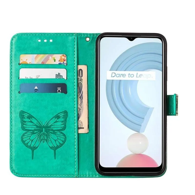 Zelené knížkové pouzdro Butterflies na mobil Realme C21Y/C25Y