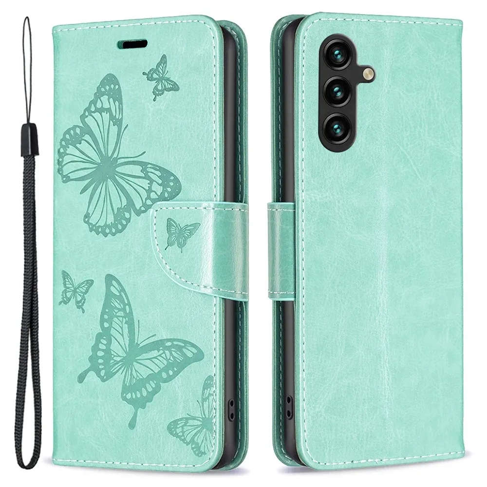 Modrozelené peněženkové pouzdro Butterfly pro mobil Samsung Galaxy A35 5G