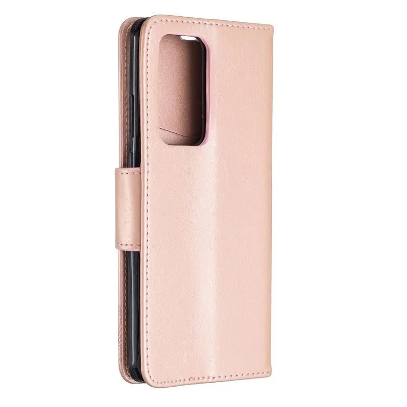 Butterfly PU kožené peněženkové pouzdro na mobil Huawei P40 Pro - růžovozlaté