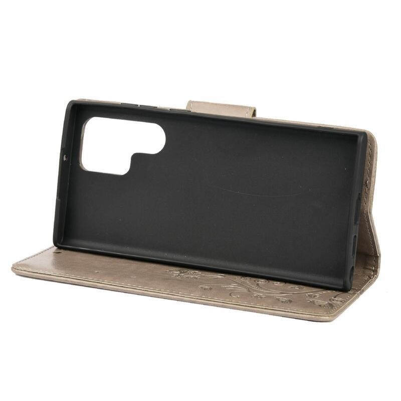 Butterfly PU kožené peněženkové pouzdro na mobil Samsung Galaxy S22 Ultra 5G - šedé