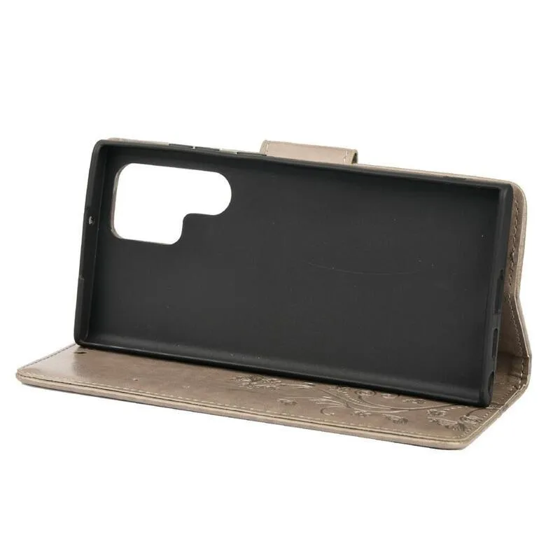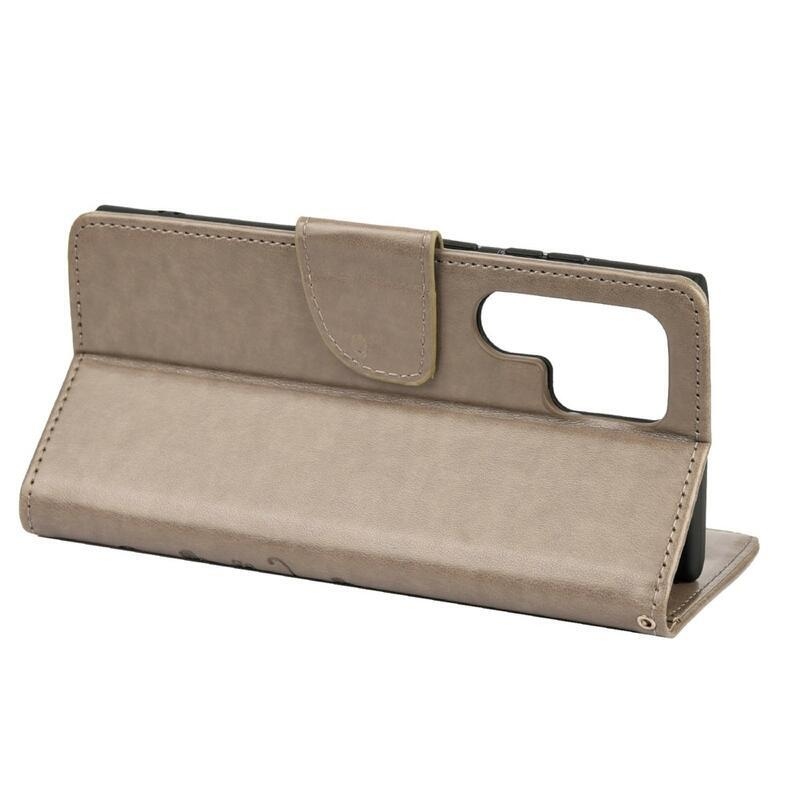 Butterfly šedé knížkové pouzdro na mobil Samsung Galaxy S22 Ultra 5G