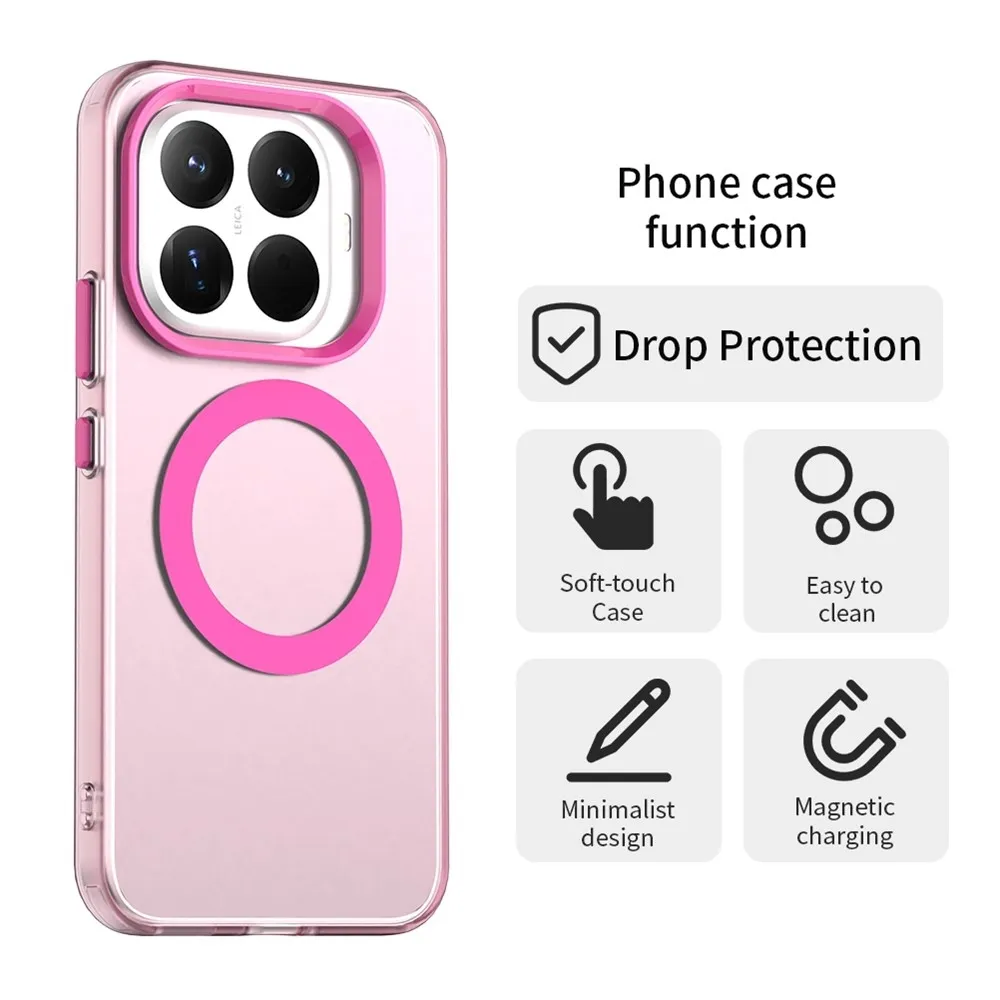 ✅【Vysoce kvalitní materiál】 Candy gelový obal s podporou MagSafe na mobil Xiaomi 15T Pro v růžové barvě je vyroben z prémiového PC + TPU + PET materiálu, chrání telefon před poškrábáním, nárazy a jiným každodenním poškozením