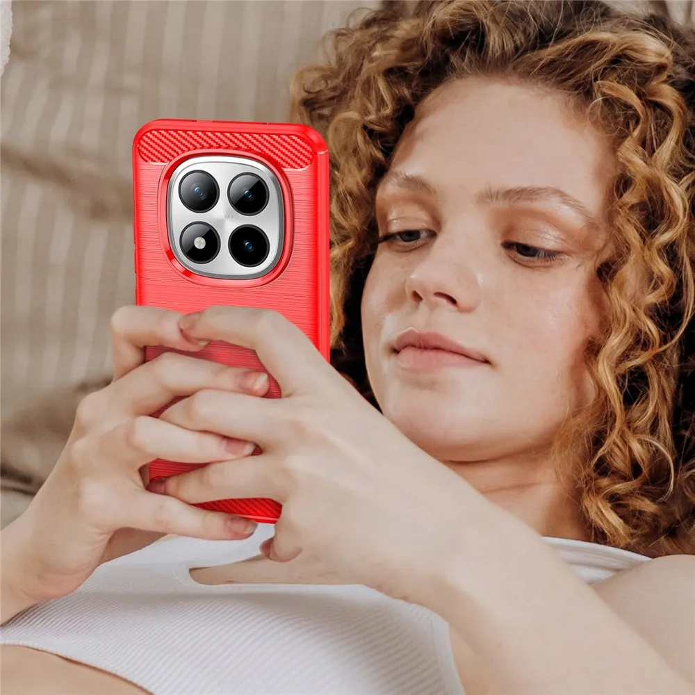 Červený odolný gelový kryt Carbon na mobil Xiaomi Redmi Note 15 Pro+ 5G