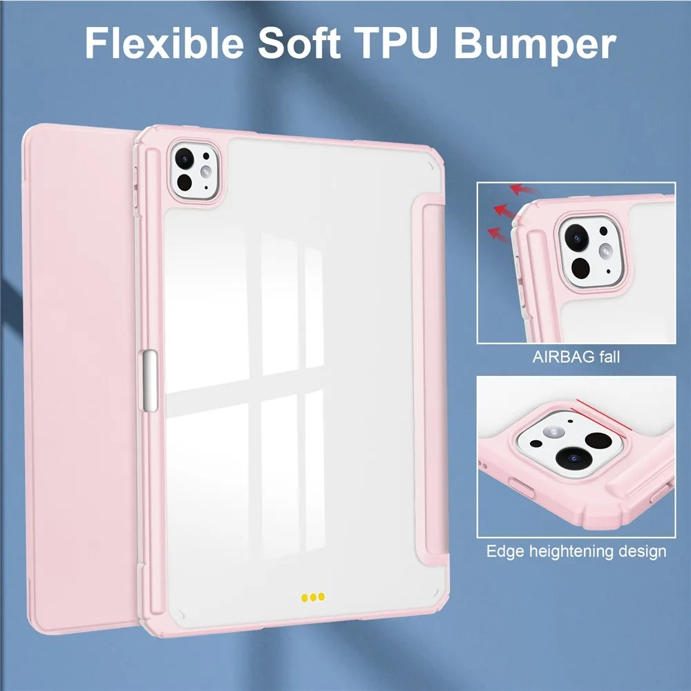 Case chytré zavírací pouzdro v pevnými zády na tablet iPad Pro 11 (2024)/(2025) - růžové