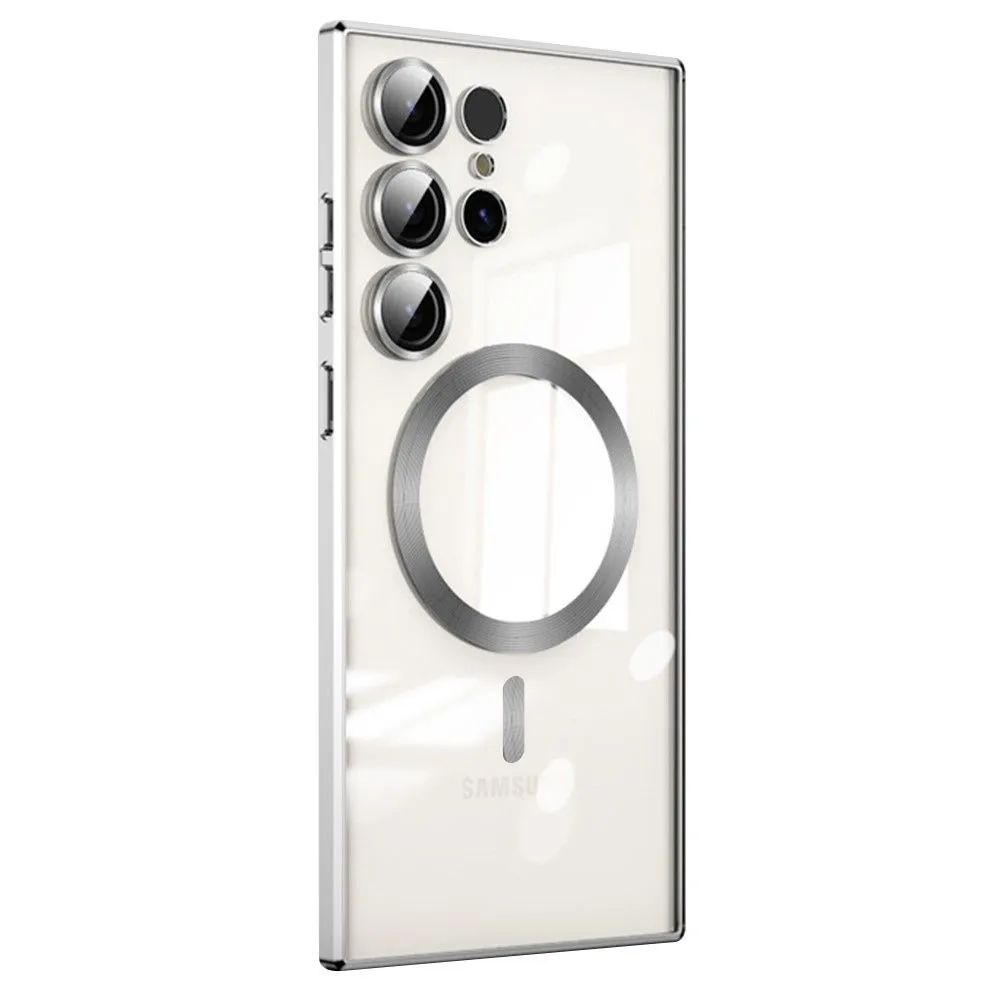 Clear obal s ochranou fotoaparátu a podporou MagSafe na Samsung Galaxy S23 Ultra - stříbrný