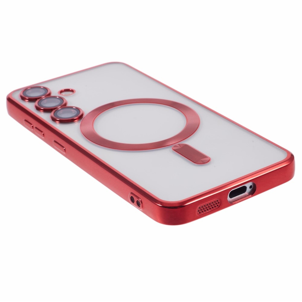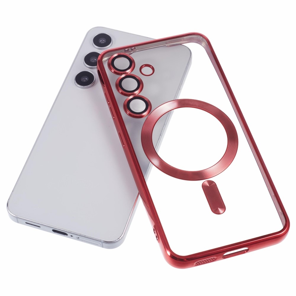 Červený kryt Clear s ochranou fotoaparátu a podporou MagSafe na mobil Samsung Galaxy S25+
