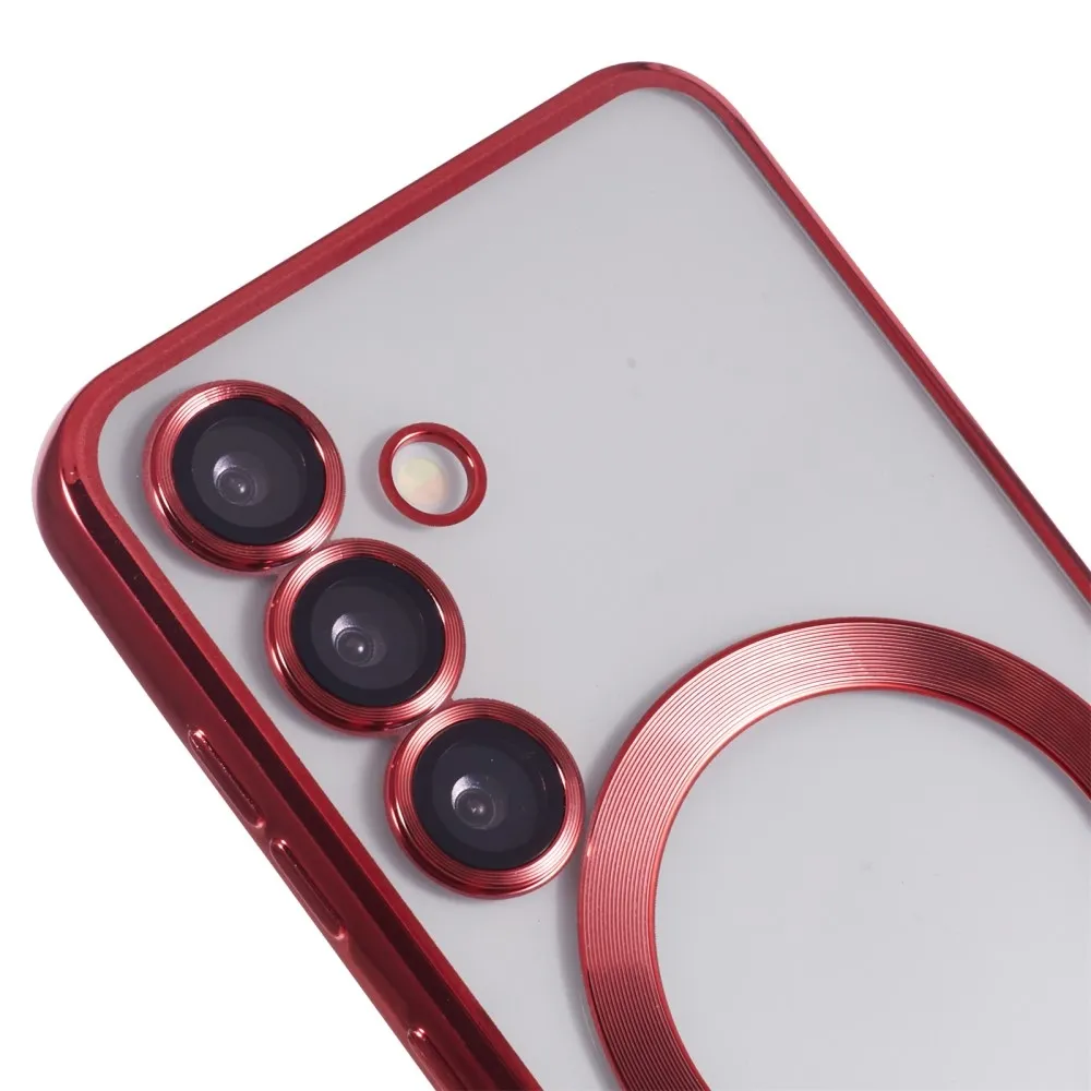 Clear obal s ochranou fotoaparátu a podporou MagSafe na Samsung Galaxy S25+ - červený