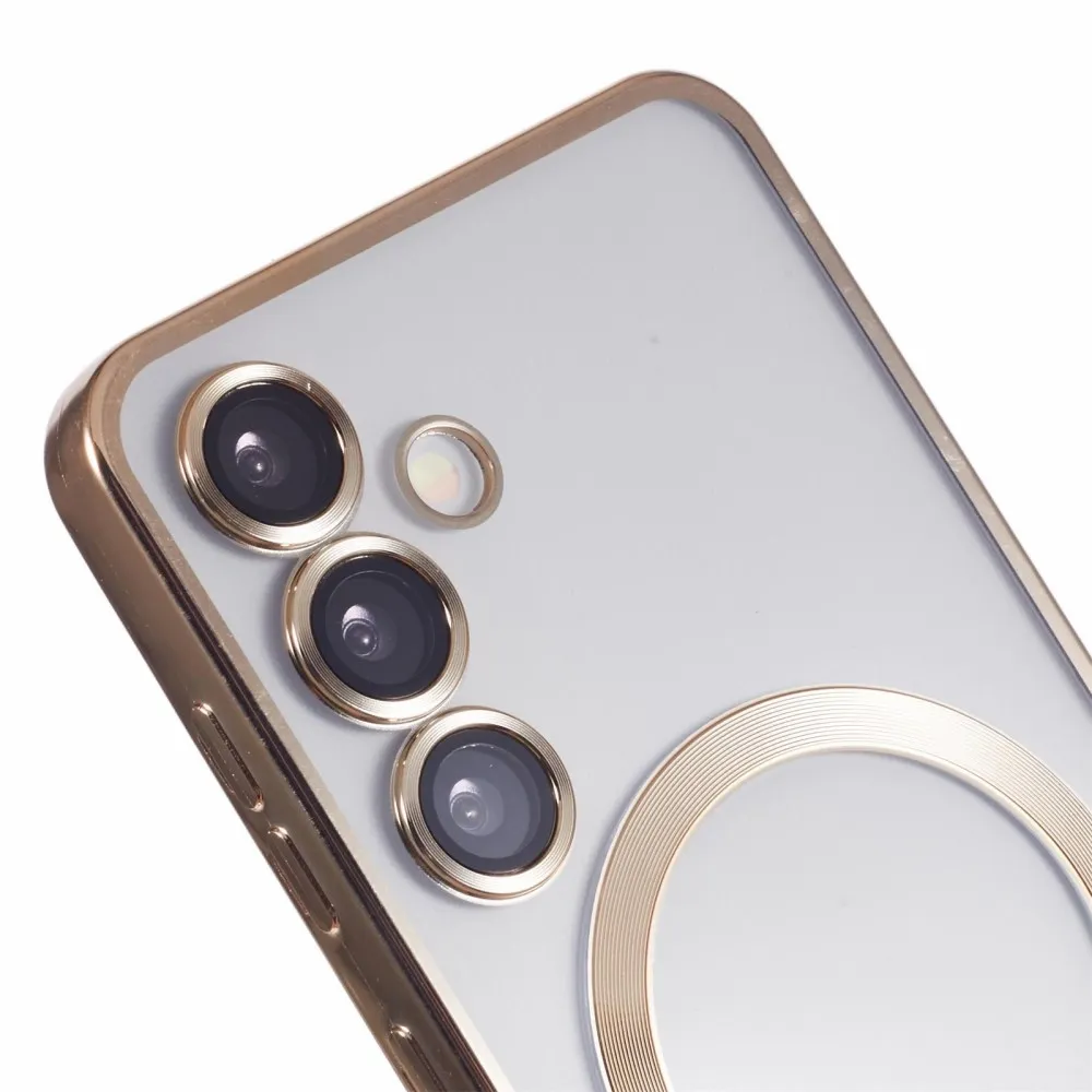 Clear obal s ochranou fotoaparátu a podporou MagSafe na Samsung Galaxy S25+ - zlatý
