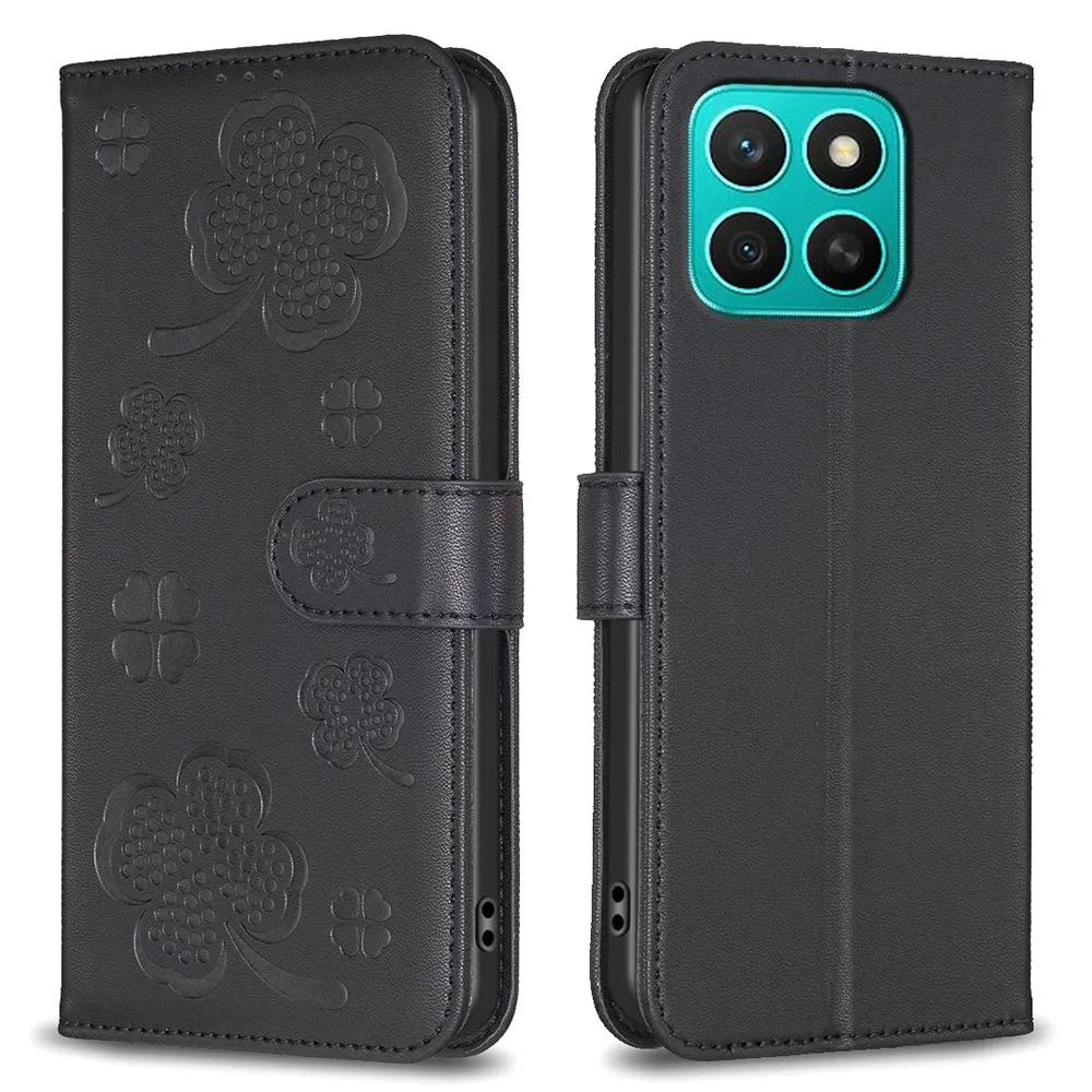 ✅【Odolné tlumení nárazů】 Clover knížkové pouzdro na mobil Honor X8c - černé je vyrobeno z hladké umělé kůže a měkkého materiálu TPU a nabízí vynikající absorpci nárazů a ochranu proti pádu, čímž chrání váš telefon před každodenními nárazy
