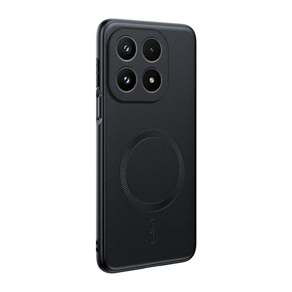 Černý gelový kryt Coated s umělou kůží a MagSafe na mobil Xiaomi 17