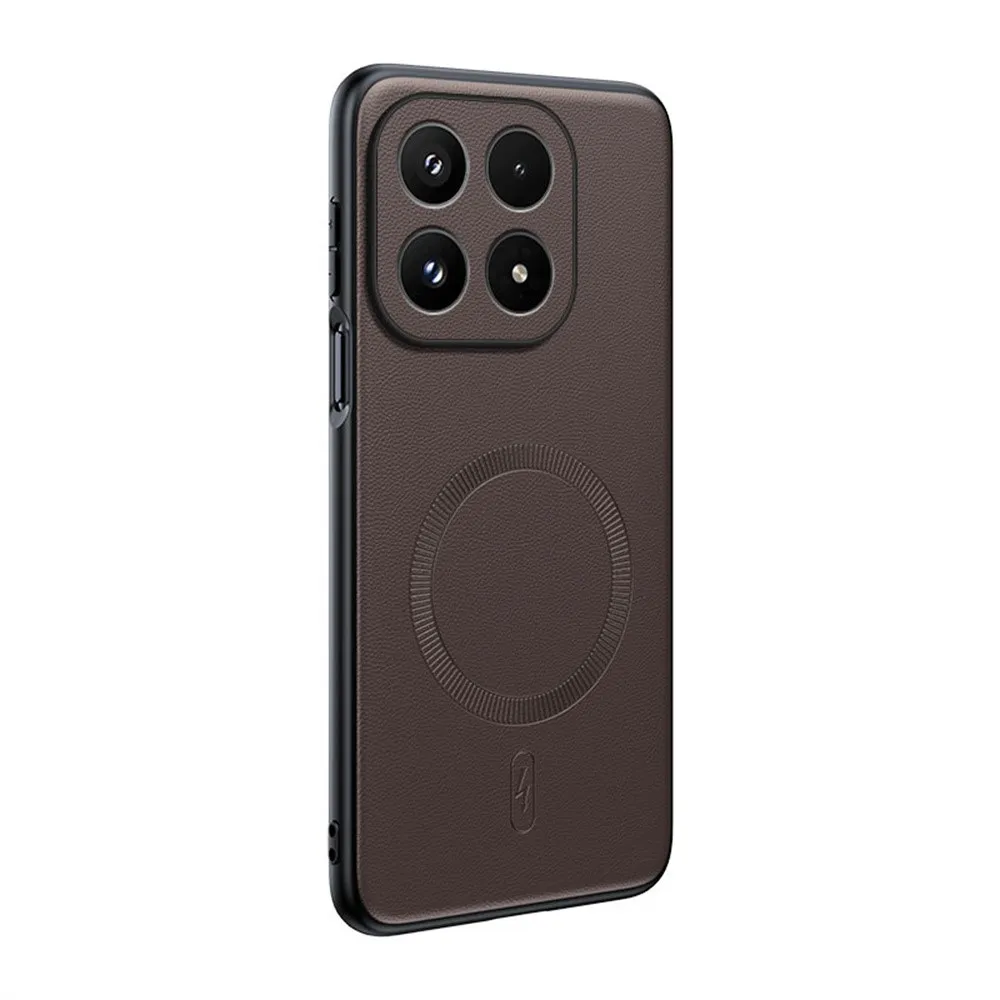 Hnědý gelový kryt Coated s umělou kůží a MagSafe na mobil Xiaomi 17