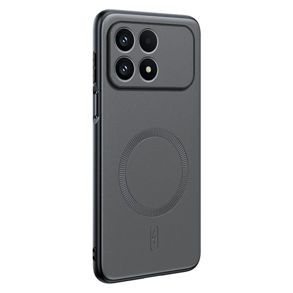 Šedý gelový kryt Coated s umělou kůží a MagSafe na mobil Xiaomi Poco F8 Pro 5G