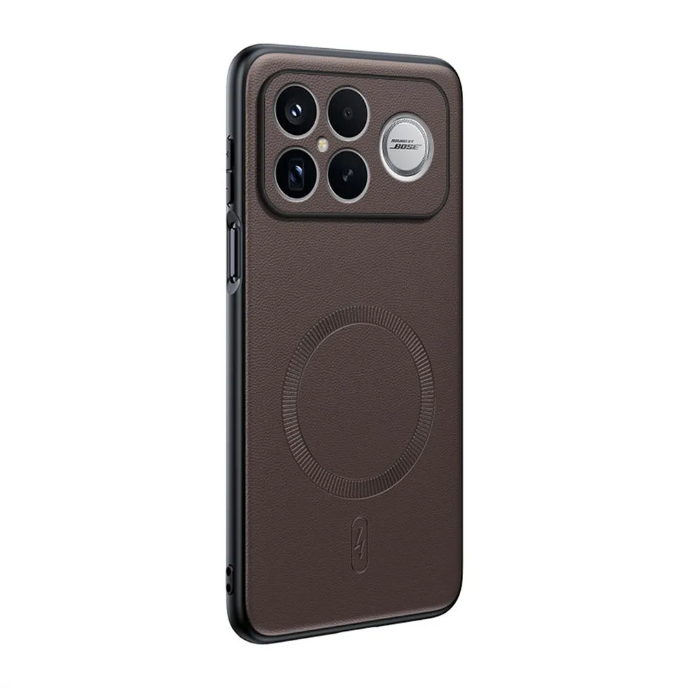 Hnědý gelový kryt Coated s umělou kůží a MagSafe na mobil Xiaomi Poco F8 Ultra 5G