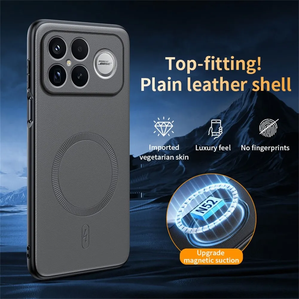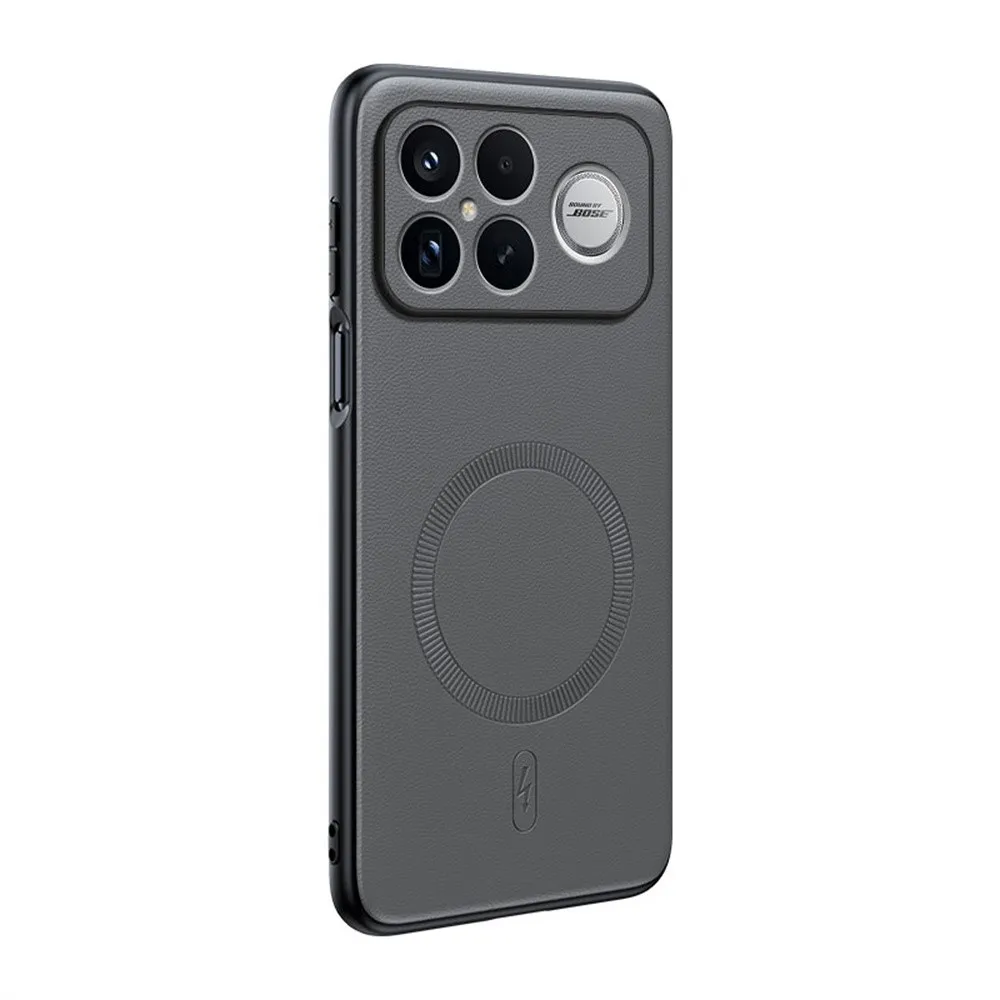 Šedý gelový kryt Coated s umělou kůží a MagSafe na mobil Xiaomi Poco F8 Ultra 5G
