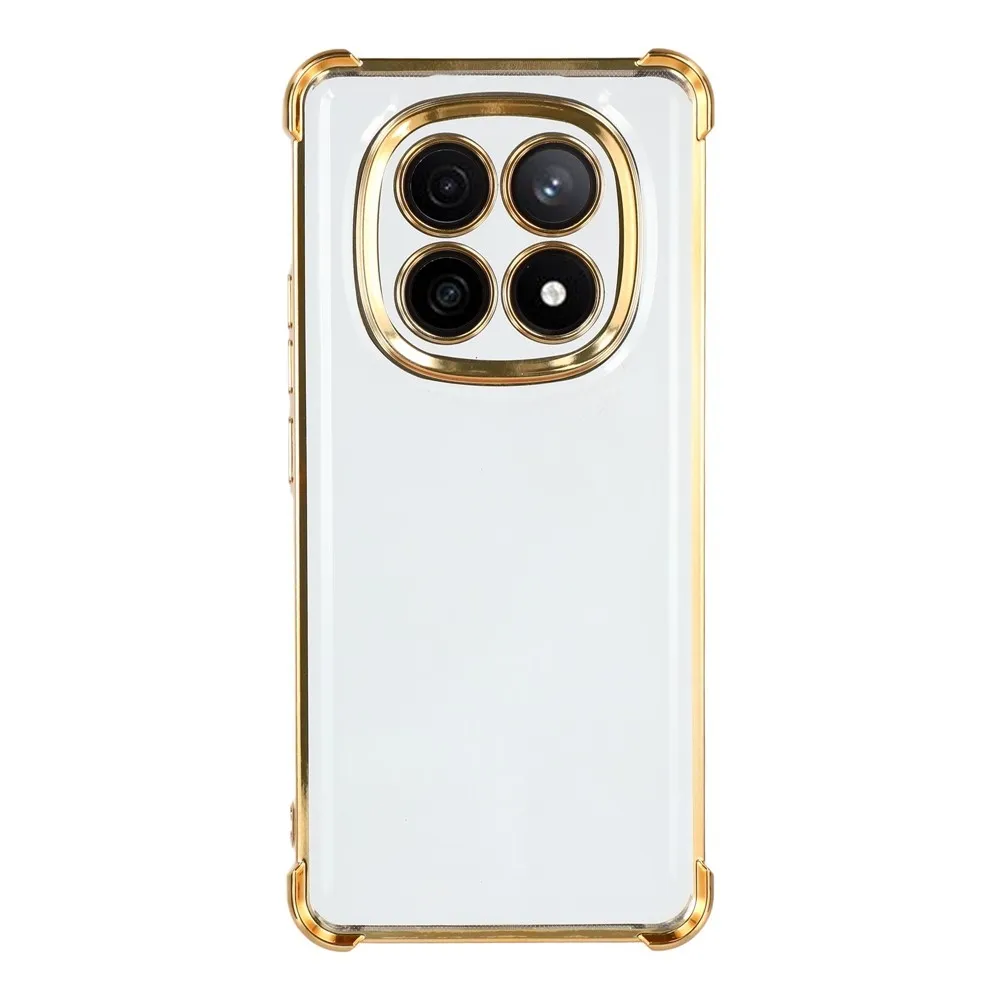 Corners odolný gelový obal s vyztuženými rohy pro model Xiaomi Poco M8 5G/Redmi Note 15 5G nabízí spolehlivou ochranu v kombinaci s moderním designem v transparentním provedení se zlatým rámem. Zesílené a vyztužené rohy účinně tlumí nárazy při pádu a chrání nejvíce namáhané části telefonu. Průhledná zadní část zachovává originální vzhled zařízení, zatímco barevně zvýrazněný rám dodává obalu stylový kontrast. Tento gelový obal přesně přiléhá k tělu telefonu, neomezuje přístup ke konektorům ani tlačítkům a poskytuje jistější úchop při každodenním používání. ✅【Galvanicky pokovená povrchová úprava】Galvanicky pokovené okraje dodávají pouzdru prémiový vzhled a zároveň zvyšují jeho odolnost, takže si zachovává atraktivní a bezchybný vzhled i při dlouhodobém používání. ✅【Průhledný TPU materiál】Pouzdro je vyrobeno z čirého TPU materiálu, který poskytuje spolehlivou ochranu a zároveň nechává vyniknout originální design telefonu. ✅【Tloušťka 1,8 mm pro vyšší ochranu】Tloušťka 1,8 mm zajišťuje zvýšenou ochranu proti poškrábání, nárazům a pádům, přičemž si pouzdro zachovává štíhlý profil. ✅【Vyztužené rohy】Zesílené rohy účinně tlumí nárazy při pádu a snižují riziko poškození nejvíce namáhaných částí telefonu. ✅【Přesné výřezy】Precizně zpracované výřezy umožňují pohodlný přístup ke všem tlačítkům, portům i fotoaparátu a zajišťují plnou funkčnost bez nutnosti sundávání pouzdra.
