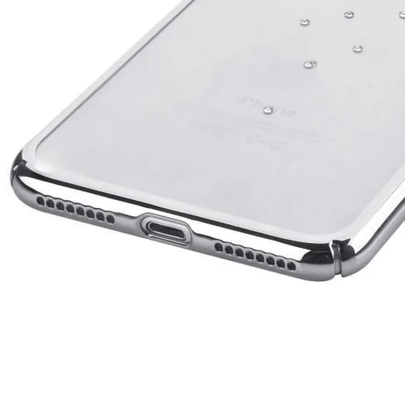 Kvalitní crystal plastový obal zdobený Swarovski na iPhone 8 Plus a 7 Plus - stříbrný za super cenu! Typ pouzdra: Plastový obal. Uchycení telefonu.