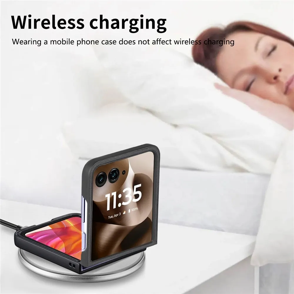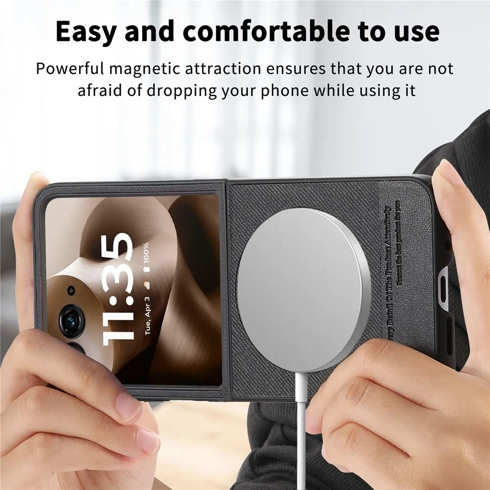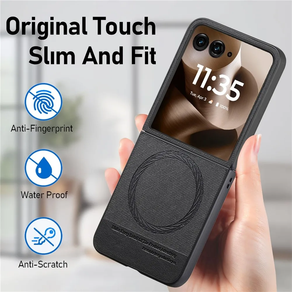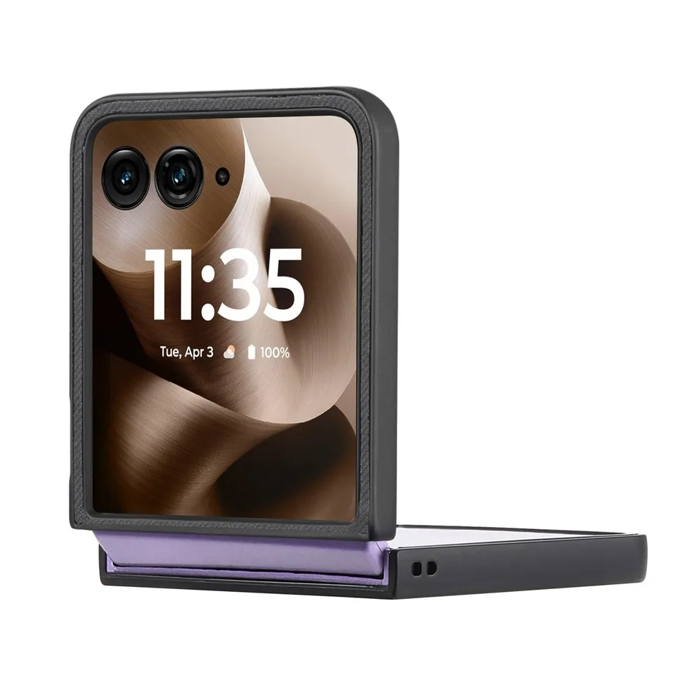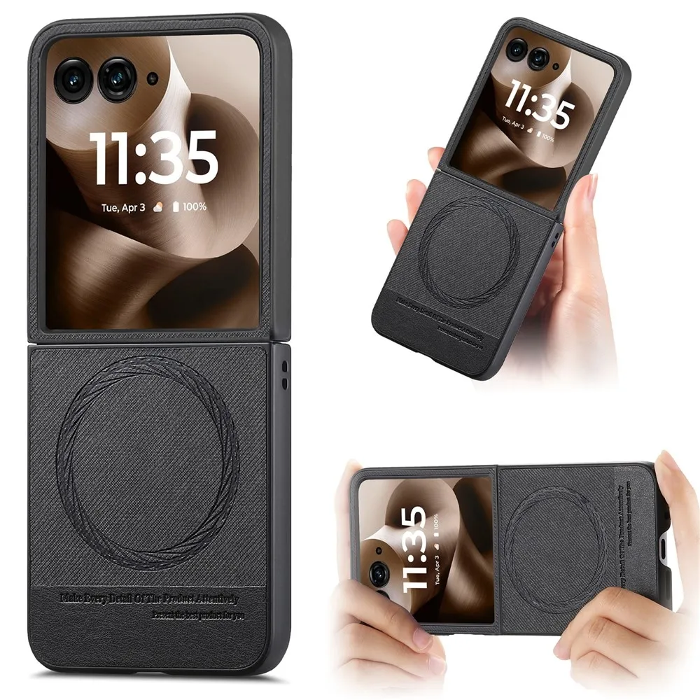 Denim plastový kryt s umělou kůží a MagSafe na Motorola Razr 60 Ultra 5G - černý
