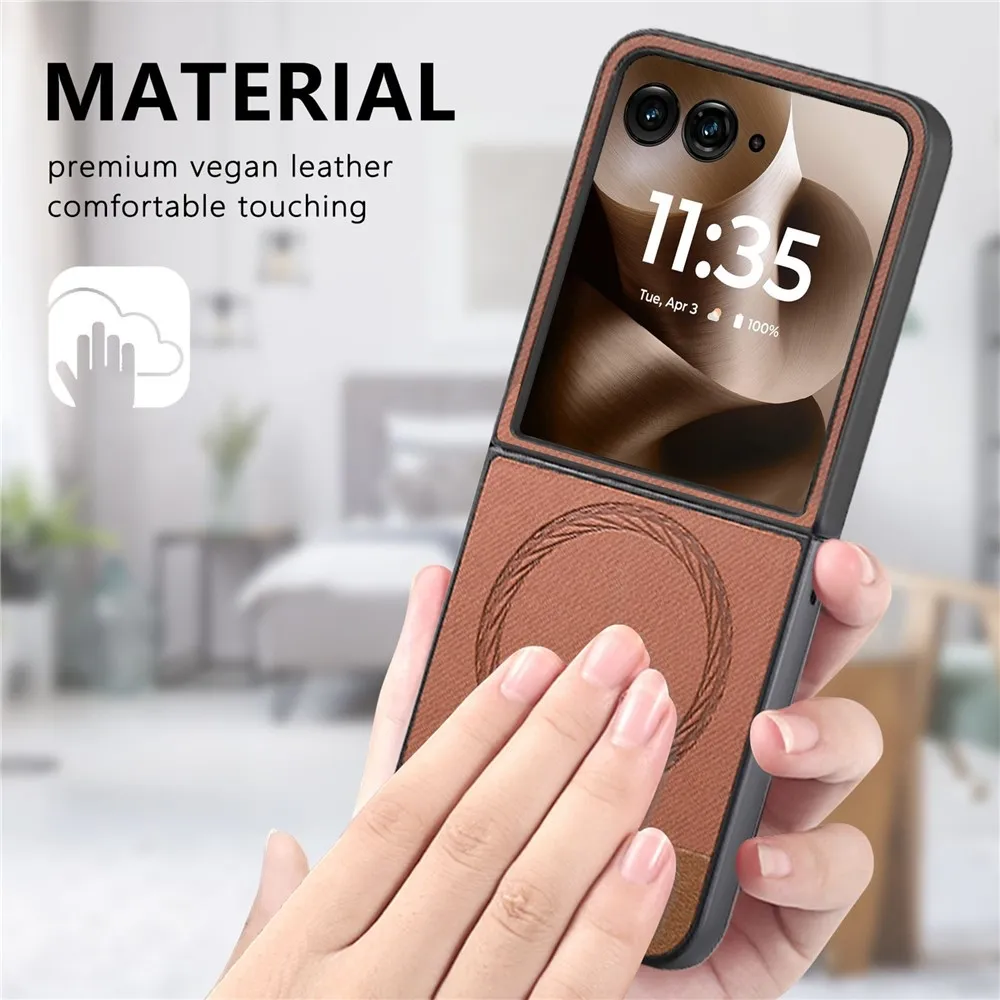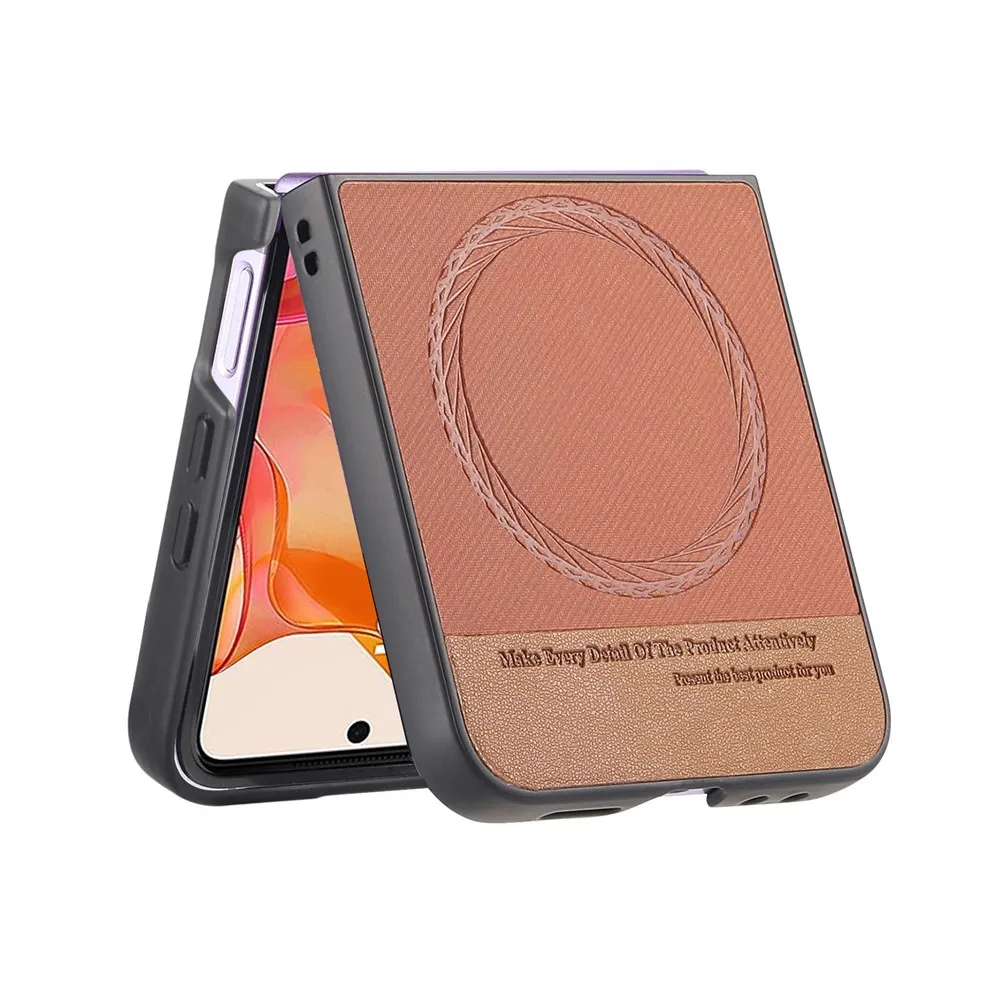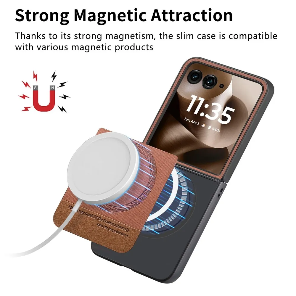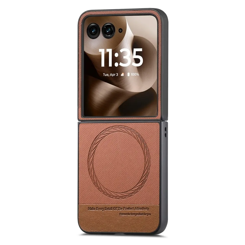 Denim plastový kryt s umělou kůží a MagSafe na Motorola Razr 60 Ultra 5G - hnědý