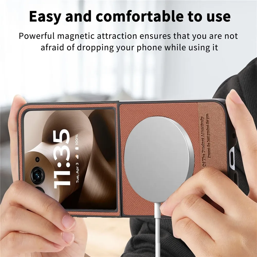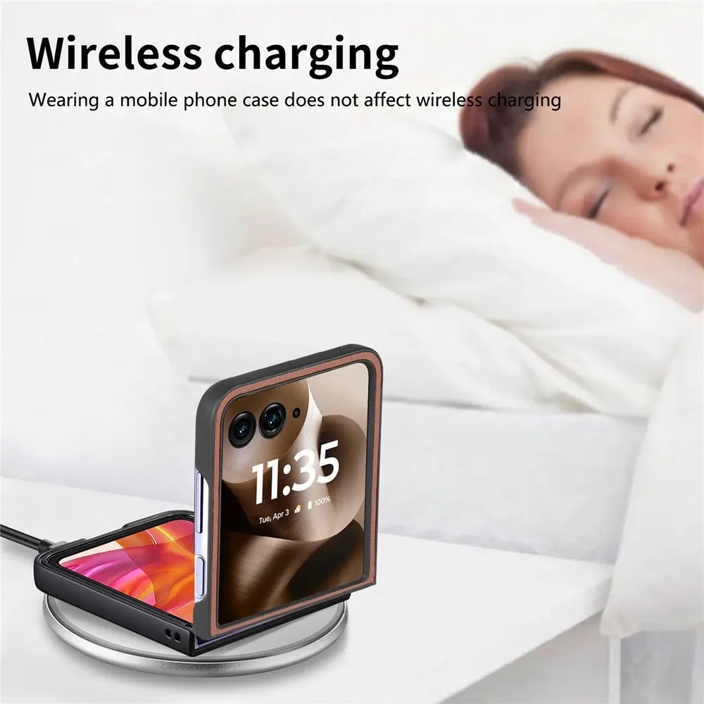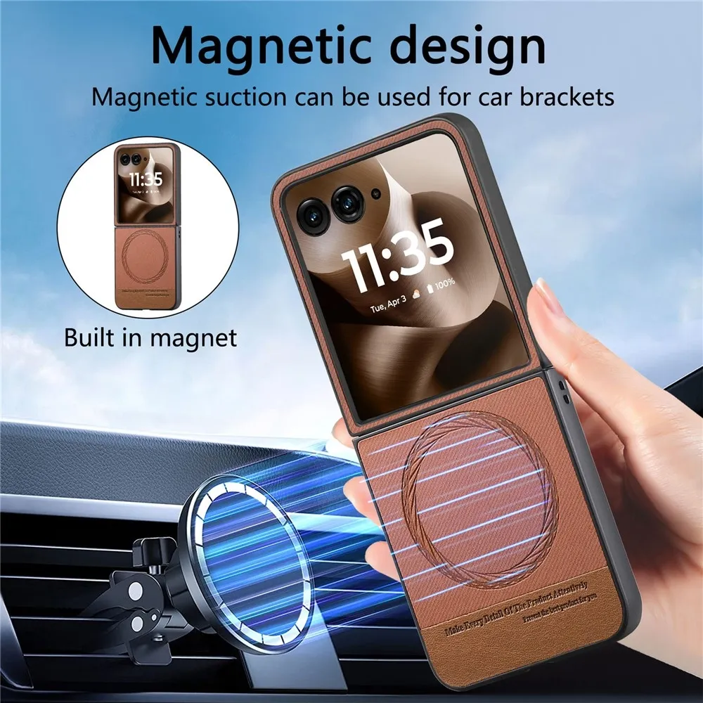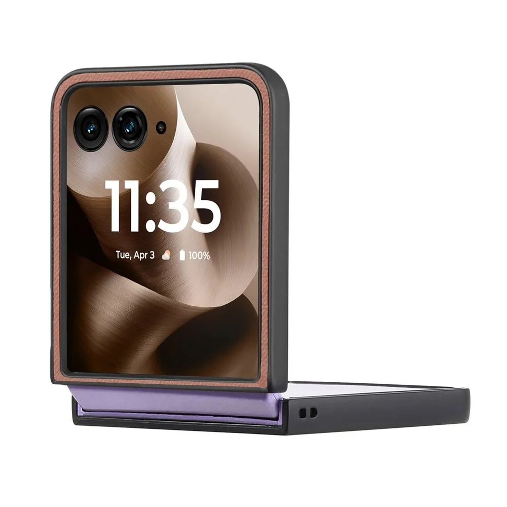 Denim plastový kryt s umělou kůží a MagSafe na Motorola Razr 60 Ultra 5G - hnědý