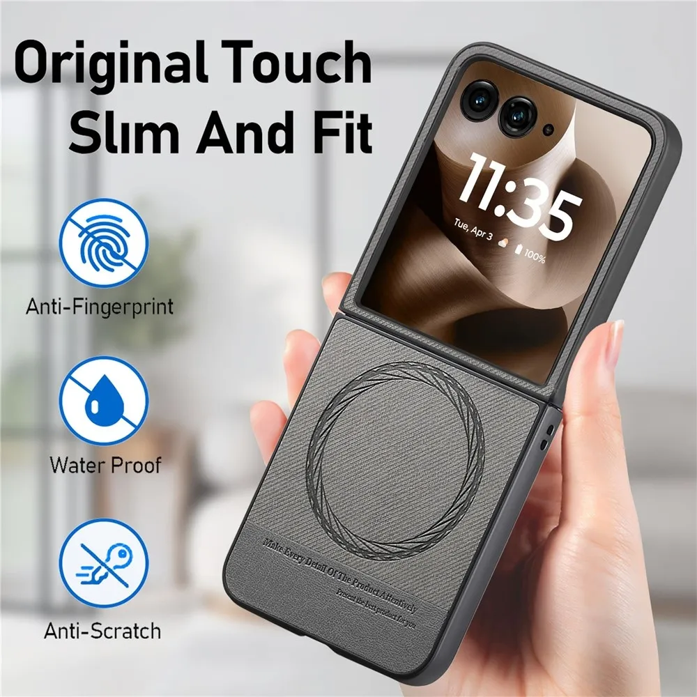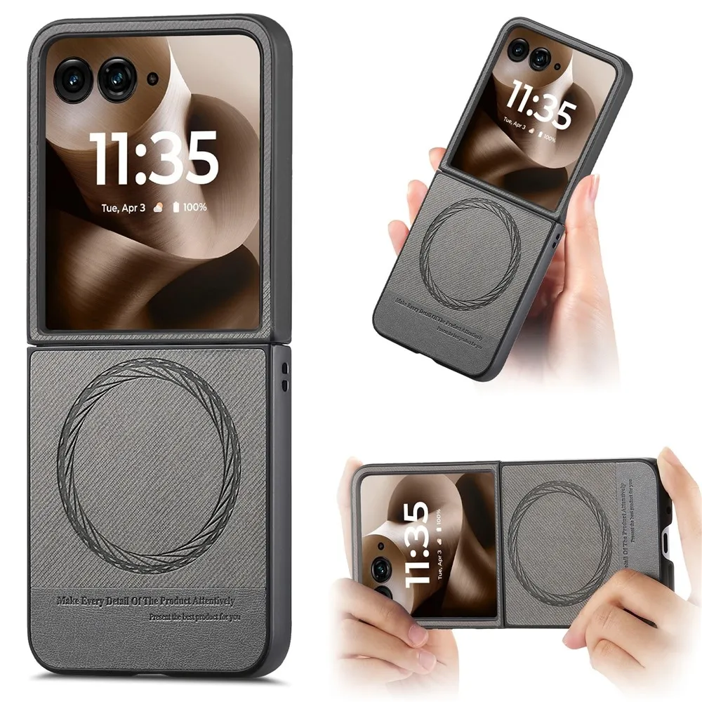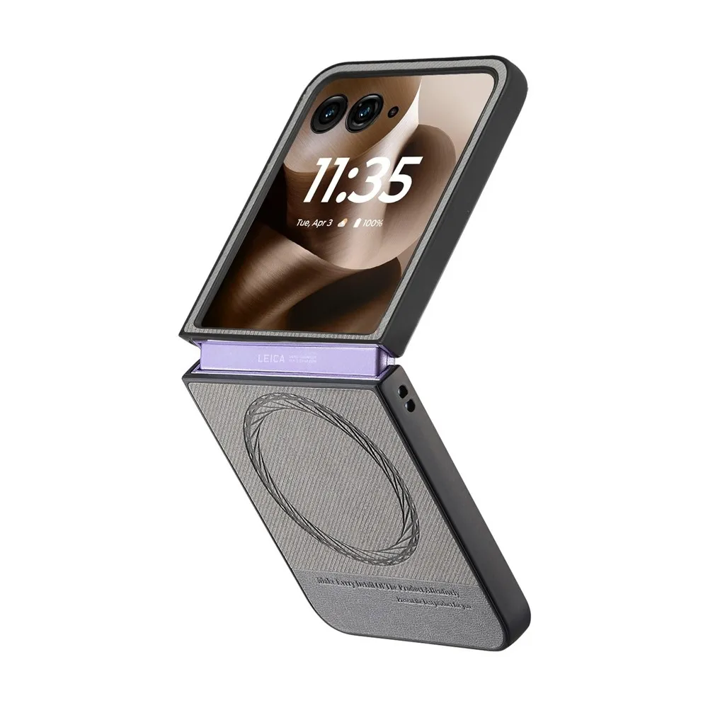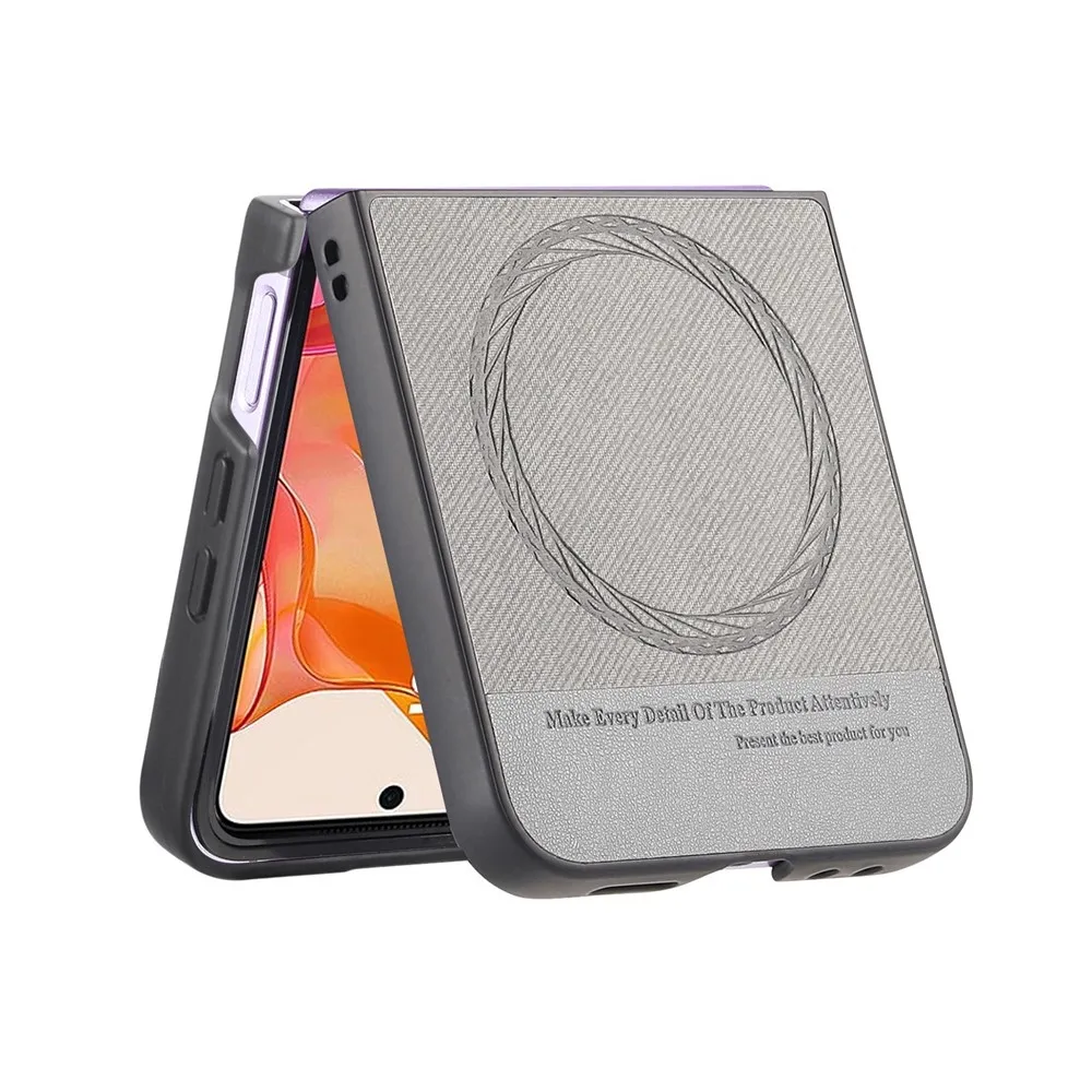 Denim plastový kryt s umělou kůží a MagSafe na Motorola Razr 60 Ultra 5G - šedý