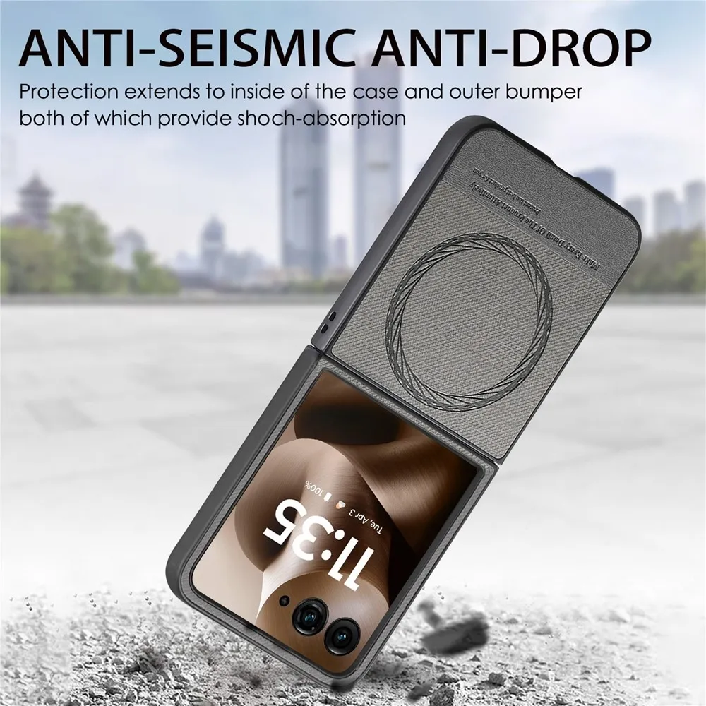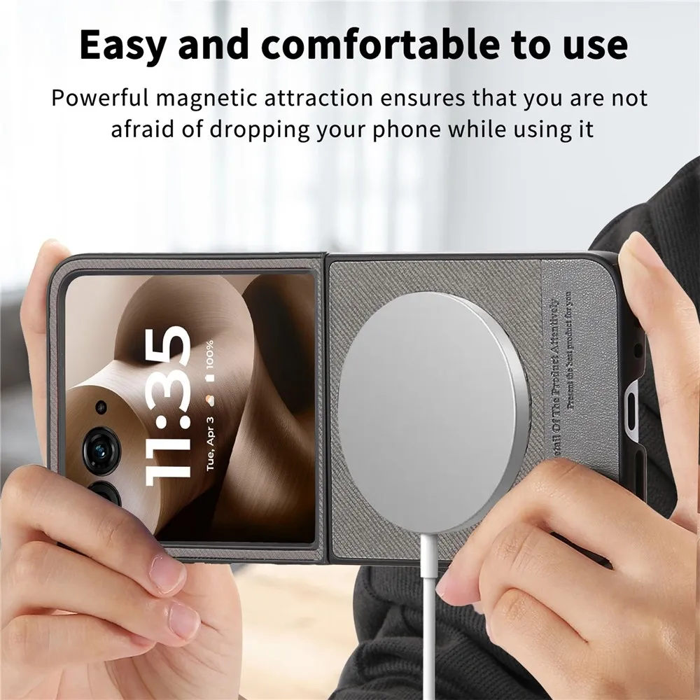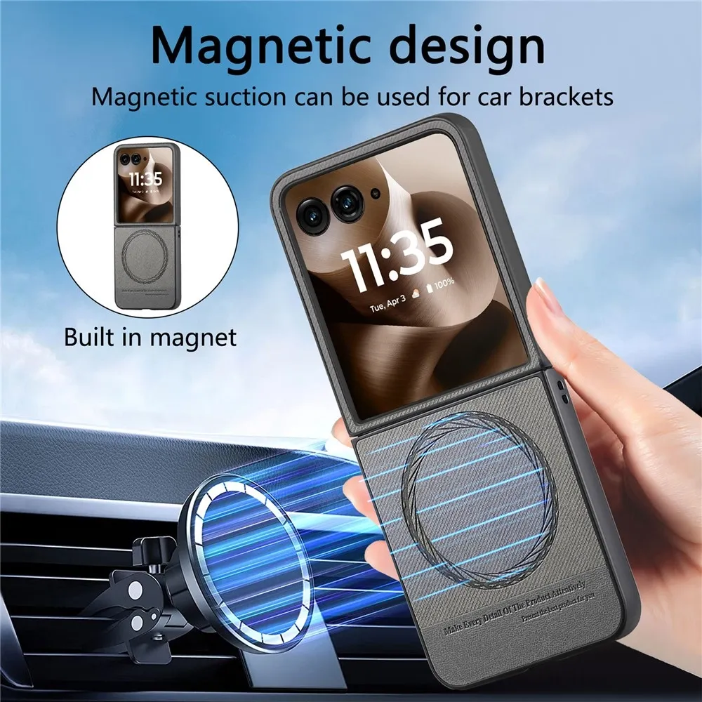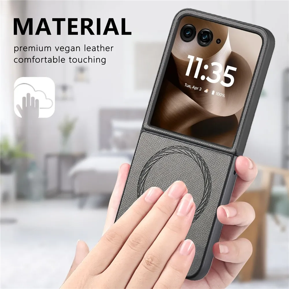 Denim plastový kryt s umělou kůží a MagSafe na Motorola Razr 60 Ultra 5G - šedý