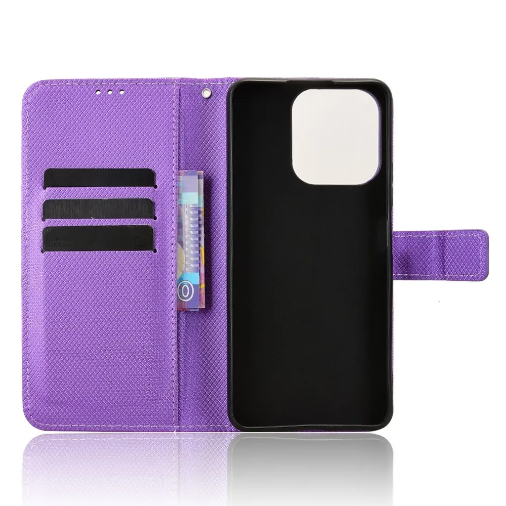 ✅【PU kůže a materiál TPU】 Diamond knížkové pouzdro ve fialové barvě na mobil Realme Note 70T je vyrobeno z prvotřídní PU kůže v kombinaci s odolným TPU pro stylovou a spolehlivou ochranu