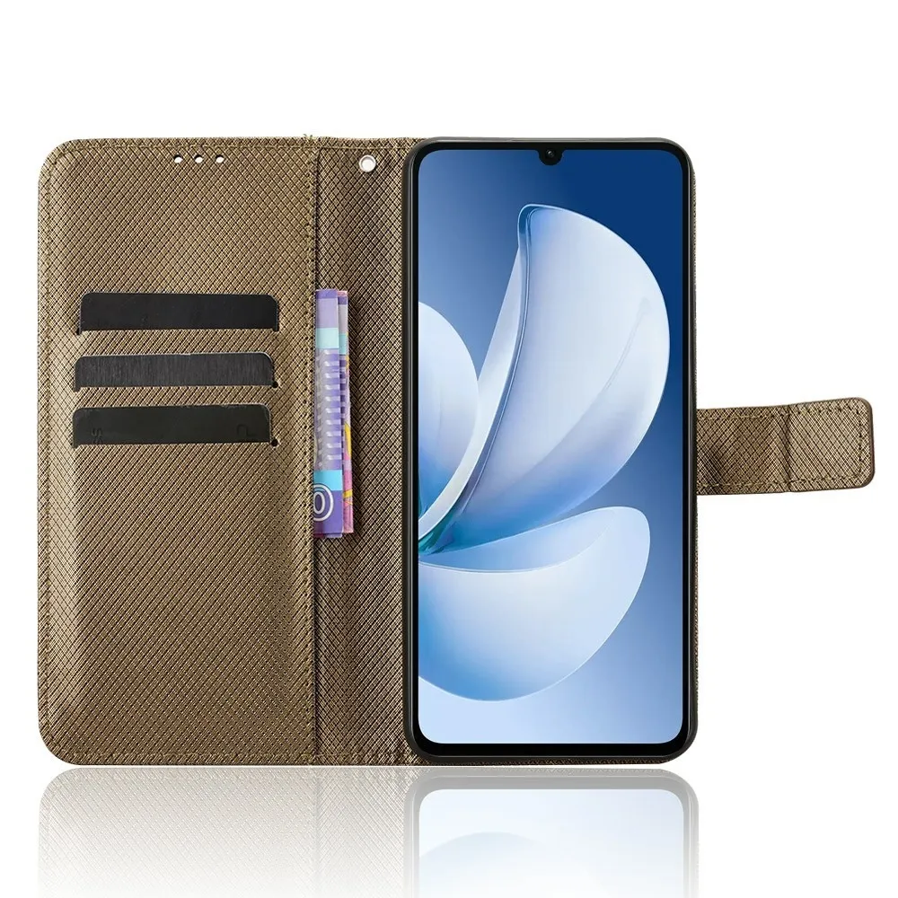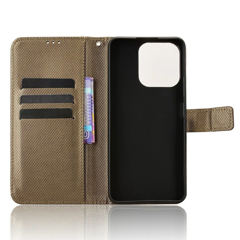 ✅【PU kůže a materiál TPU】 Diamond knížkové pouzdro v hnědé barvě na mobil Realme Note 70T je vyrobeno z prvotřídní PU kůže v kombinaci s odolným TPU pro stylovou a spolehlivou ochranu