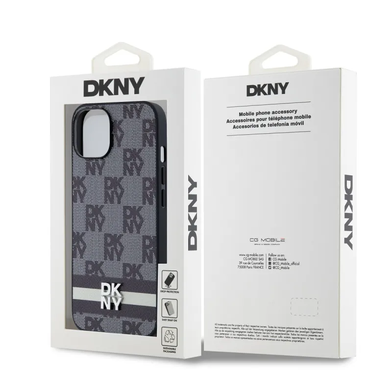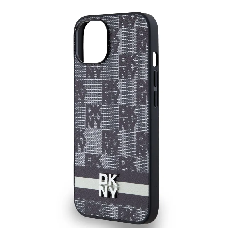 DKNY PU Leather Checkered Pattern and Stripe Zadní Kryt pro iPhone 14 Black
