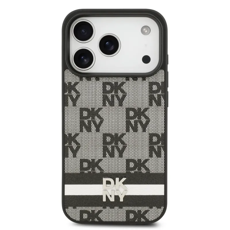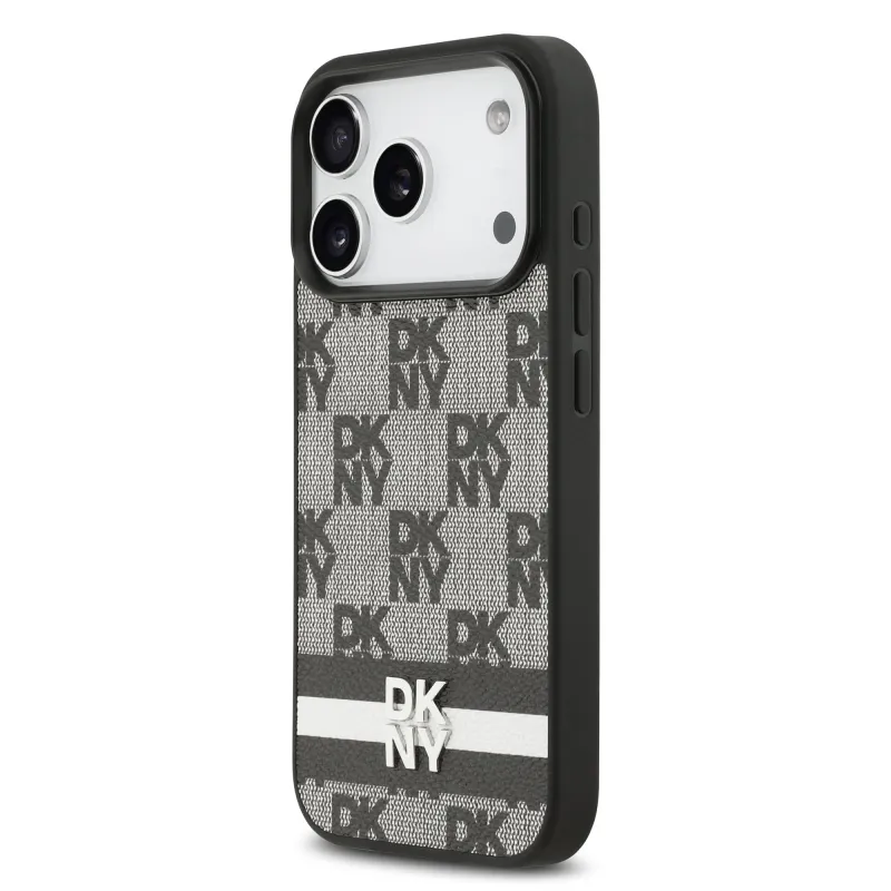 DKNY PU Leather Checkered Pattern and Stripe Zadní Kryt pro iPhone 17 Pro Black