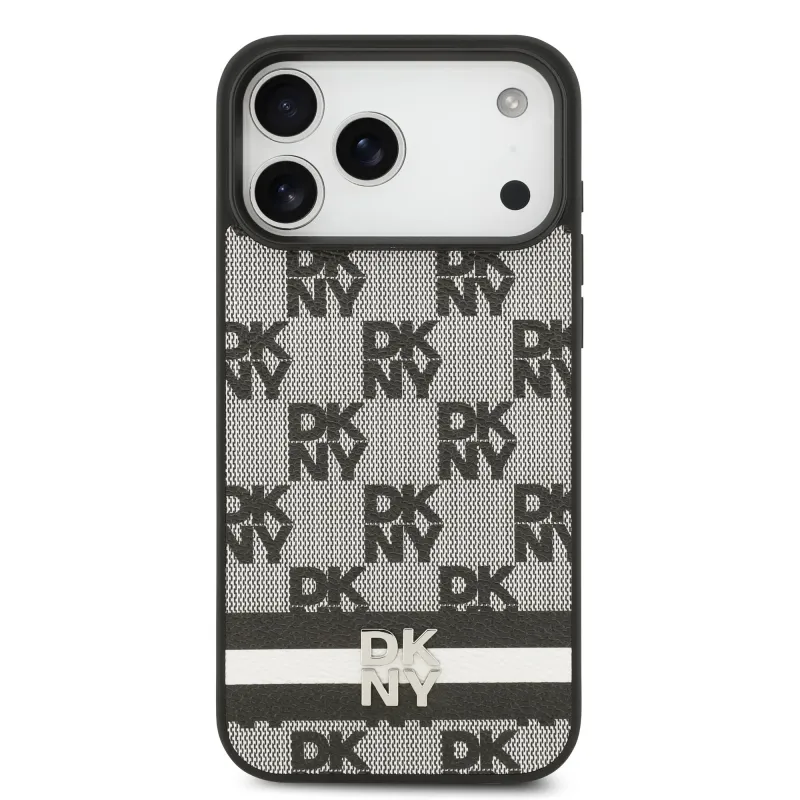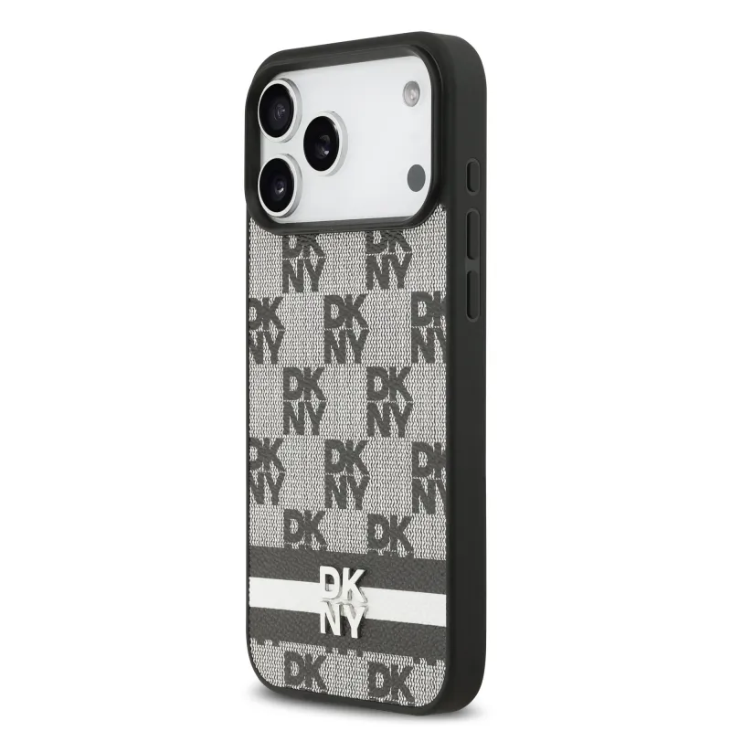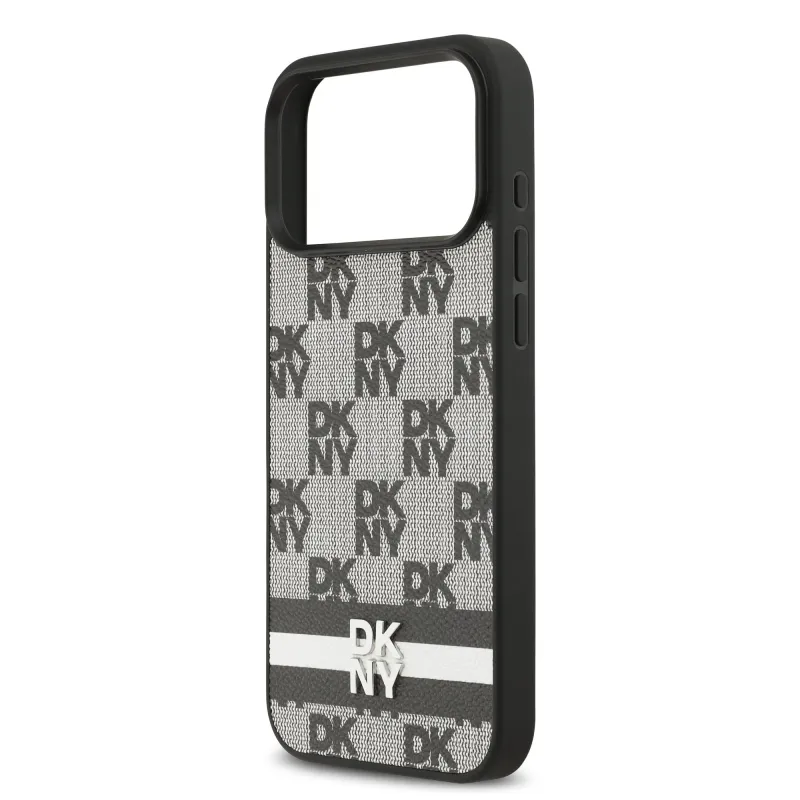 DKNY PU Leather Checkered Pattern and Stripe Zadní Kryt pro iPhone 17 Pro Max Black