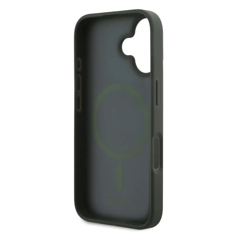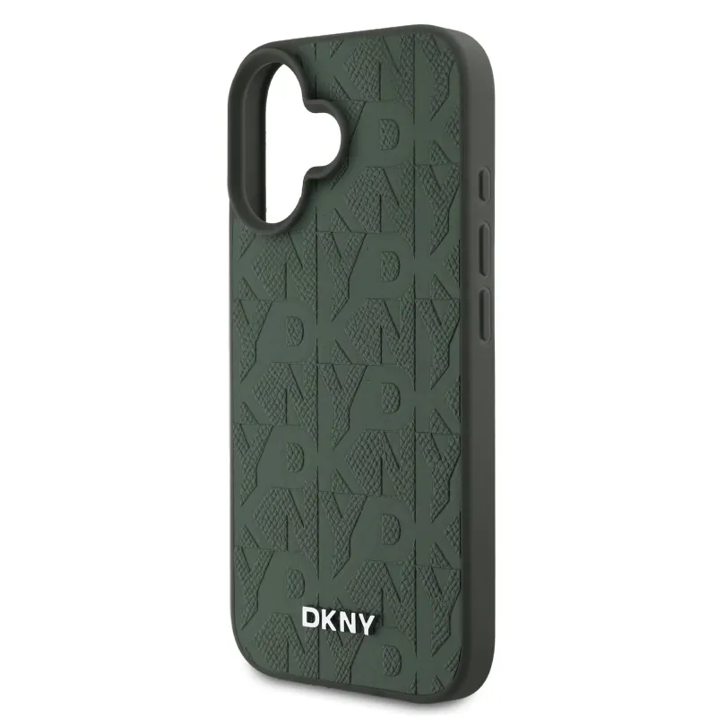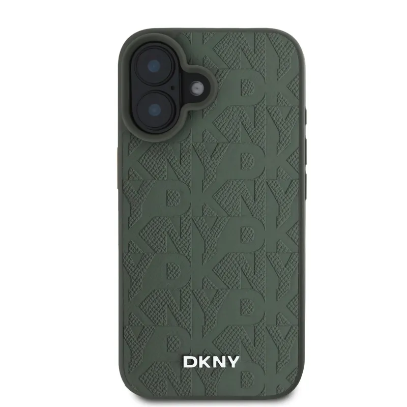 DKNY PU Leather Grid Pattern Magsafe Zadní Kryt pro iPhone 16 Green