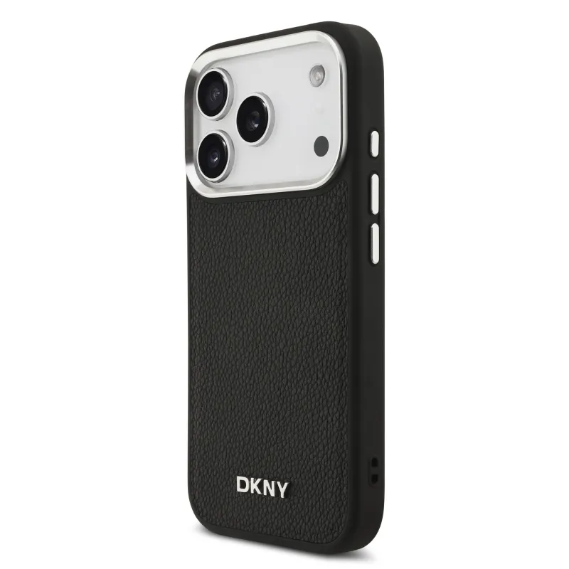 DKNY PU Leather Metal Logo Wrist Chain MagSafe Zadní Kryt pro iPhone 17 Pro Black