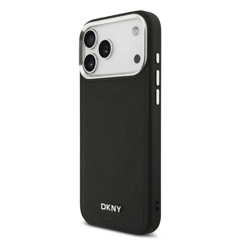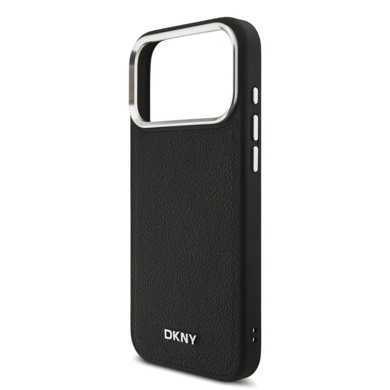 DKNY PU Leather Metal Logo Wrist Chain MagSafe Zadní Kryt pro iPhone 17 Pro Max Black