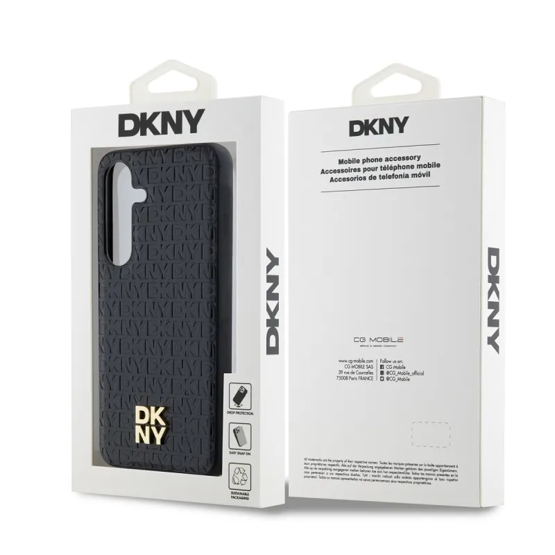 Elegantní reliéfní potisk v kombinaci s výrazným kovovým logem DKNY dodává krytu luxusní a nápaditý vzhled